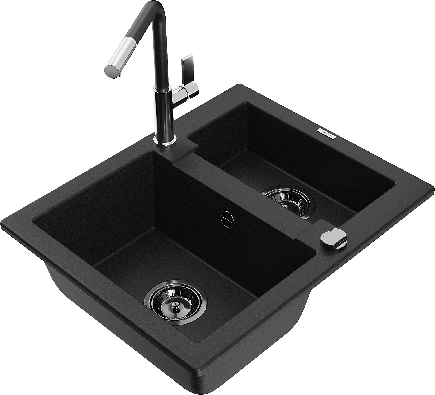 Mexen Carlos granitlējamvieta ar 1,5 nodalījumu un Flora virtuves jaucējkrānu, melns - 6518-77-670401-07-B