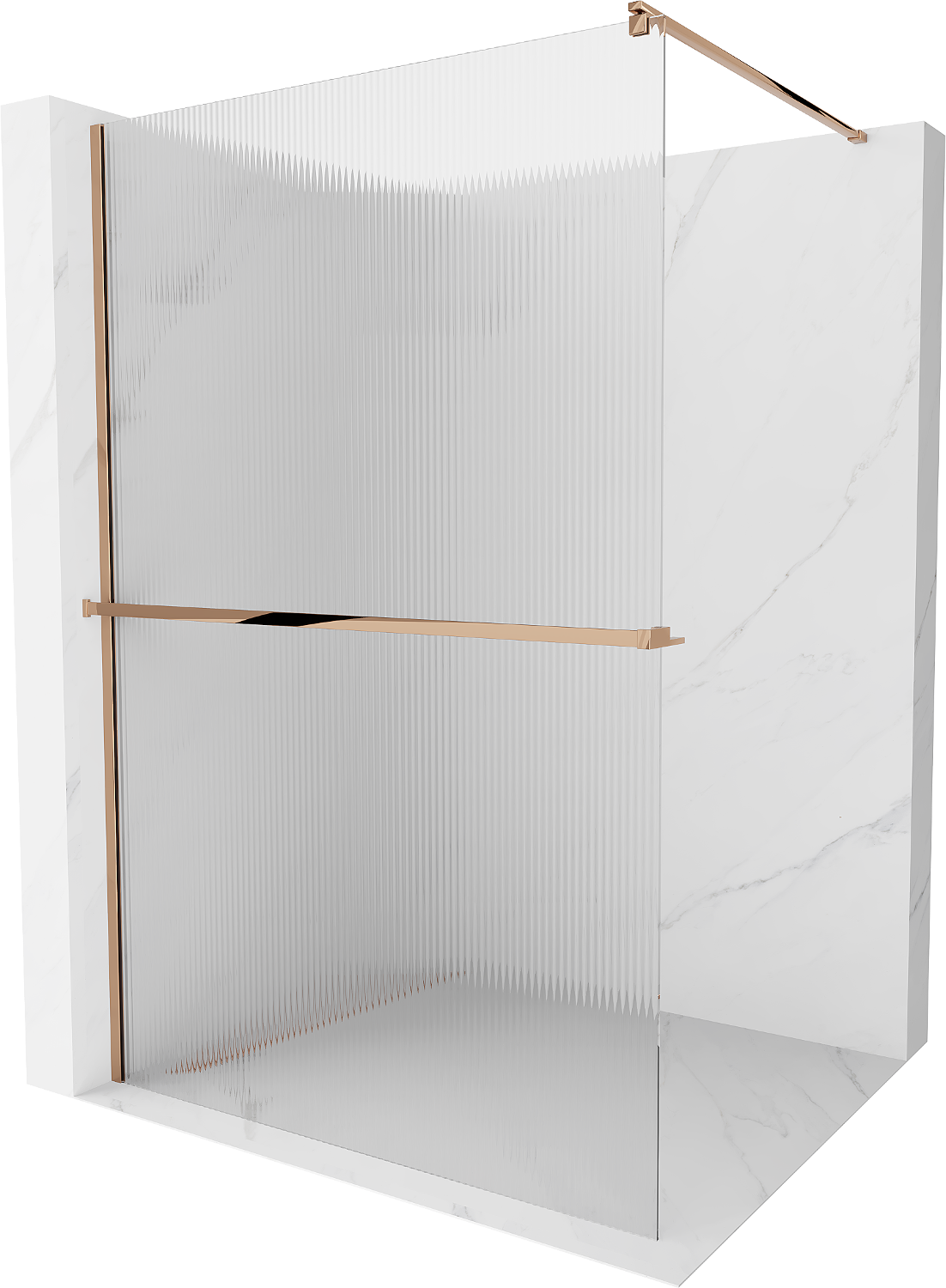 Mexen Kioto+ duša sienas ar plauktu Walk-in 130 x 200 cm, svītras, rozā zelts - 800-130-121-60-09
