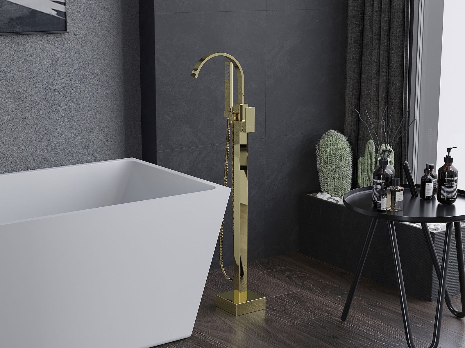 Mexen Veda brīvi stāvošs vannas jaukta krāna, zelta - 75433-50