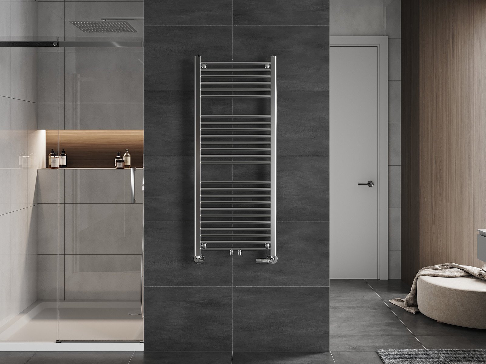 Mexen Mars vannas radiator ir lielisks risinājums jebkurai telpai. Pateicoties izmēriem 1200 x 500 mm, tas ideāli iederas vannas istabas telpās. Tas nodrošina augstu 417 W apsildes jaudu 75/65/20 °C temperatūrā, kas nodrošina efektīvu sildīšanu. Izgatavots no izturīga tērauda un pabeigts elegantajā hromā, tas garantē ilgmūžību un izturību pret koroziju. Iespēja pieslēgt no apakšas vai centrāli ir papildu priekšrocība, un sildīšanas elementa uzstādīšanas iespēja palielina funkcionalitāti. Komplektā montāžas aksesuāri.