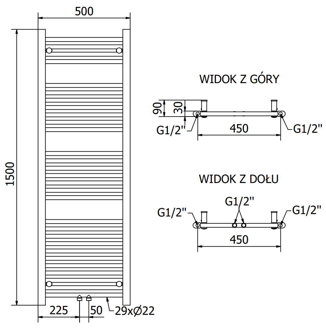 Mexen Mars vannas radiatora 1500 x 500 mm, 626 W, melna - W110-1500-500-00-70