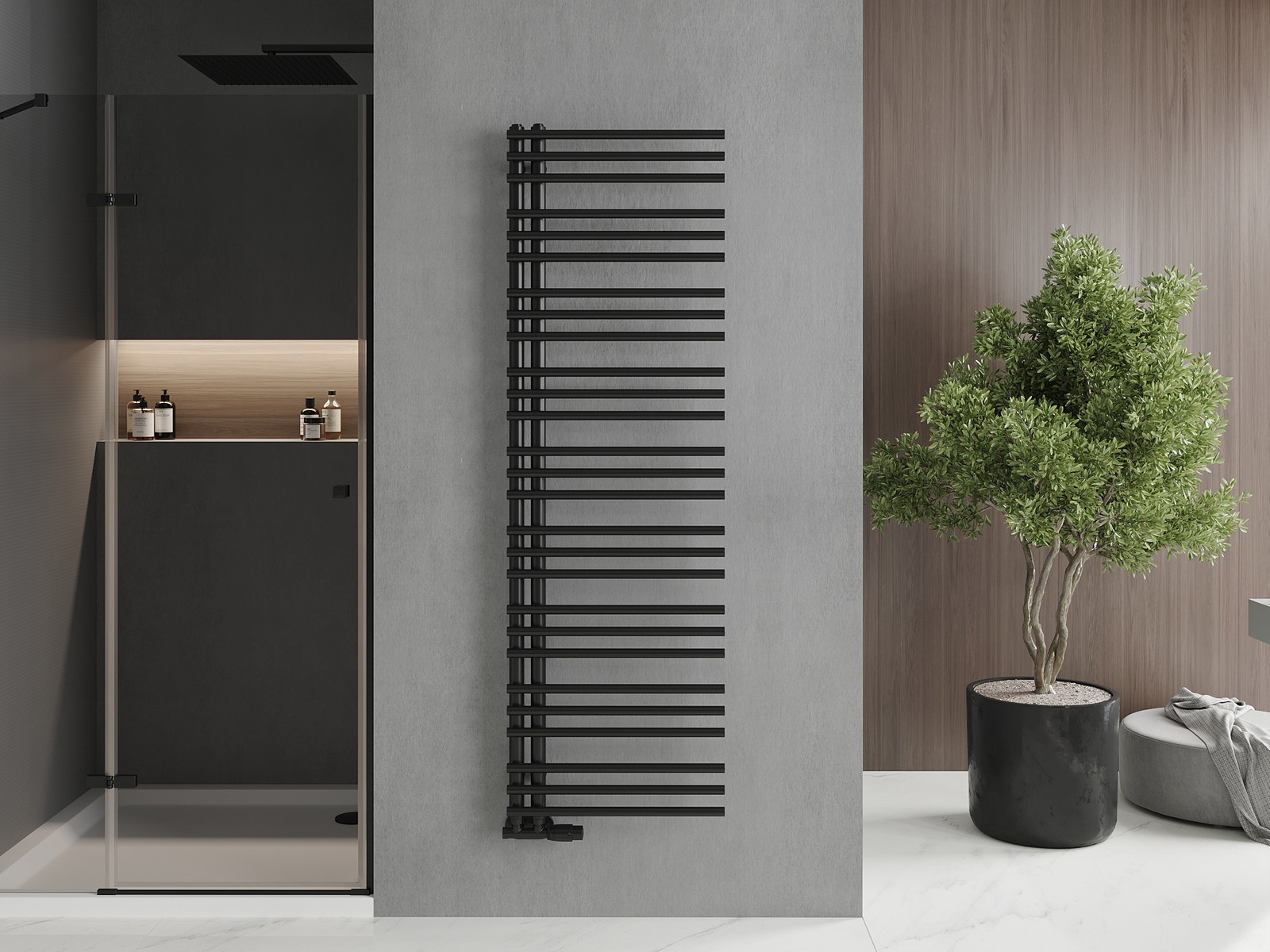 Mexen Neptun ir dekoratīvais vannas istabas radiators ar izmēriem 1600 x 500 mm, kas ideāli iederas modernās interjeros. Tā siltuma jauda ir 662 W, kas nodrošina efektīvu apsildi dažādos apstākļos, un maksimālā darba temperatūra sasniedz 95 °C. Izgatavots no tērauda, krāsots elegantā melnā krāsā RAL 9005, pateicoties augstas kvalitātes krāsojumam, tas ir noturīgs pret koroziju. 4xG ½″ savienojumi un iespēja pievienot sildītāju palielina tā funkcionalitāti. Komplektā ir piekares un montāžas komplekts.