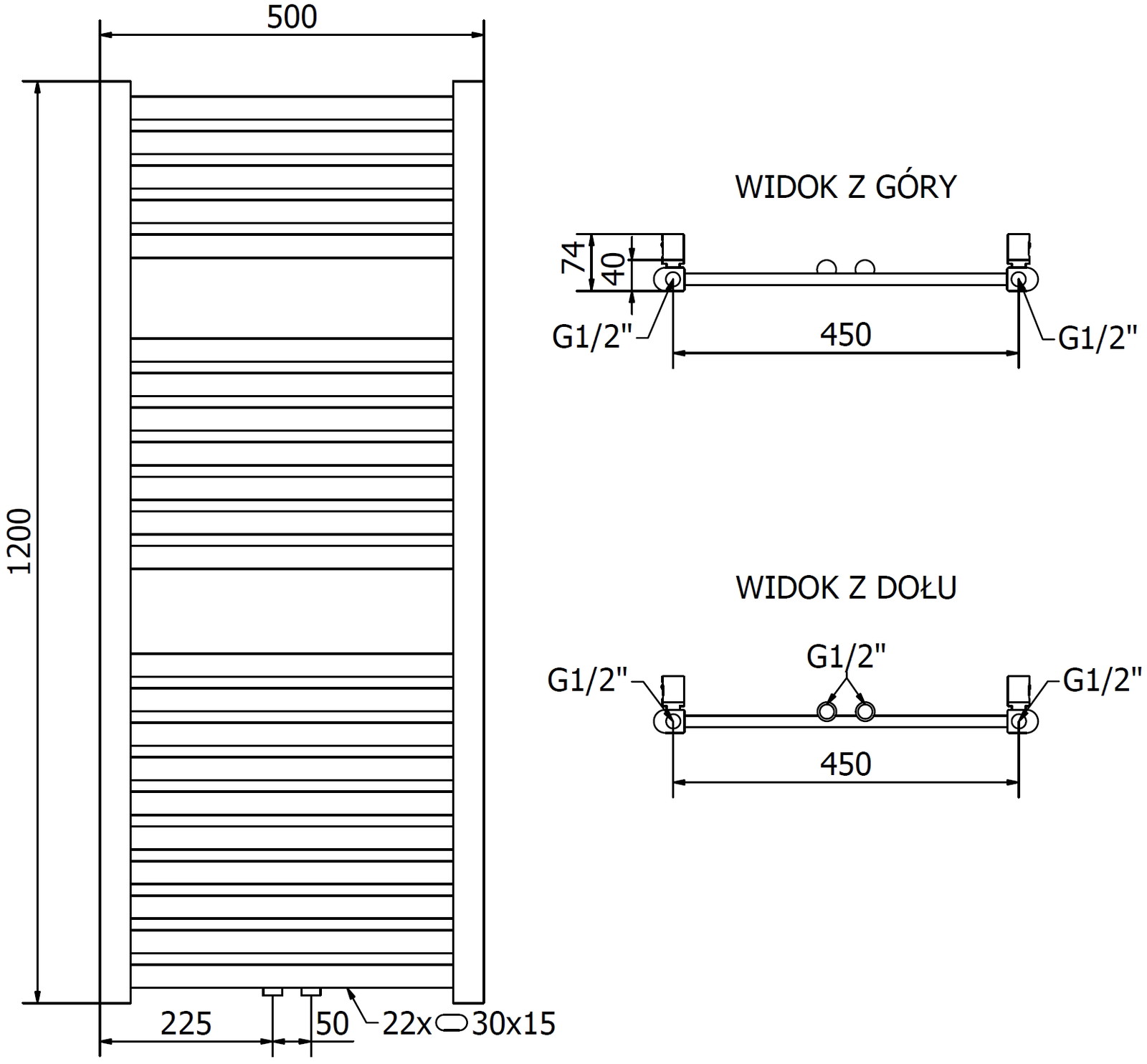 - 4xG ½″ no augšas un apakšas labajā vai kreisajā pusē