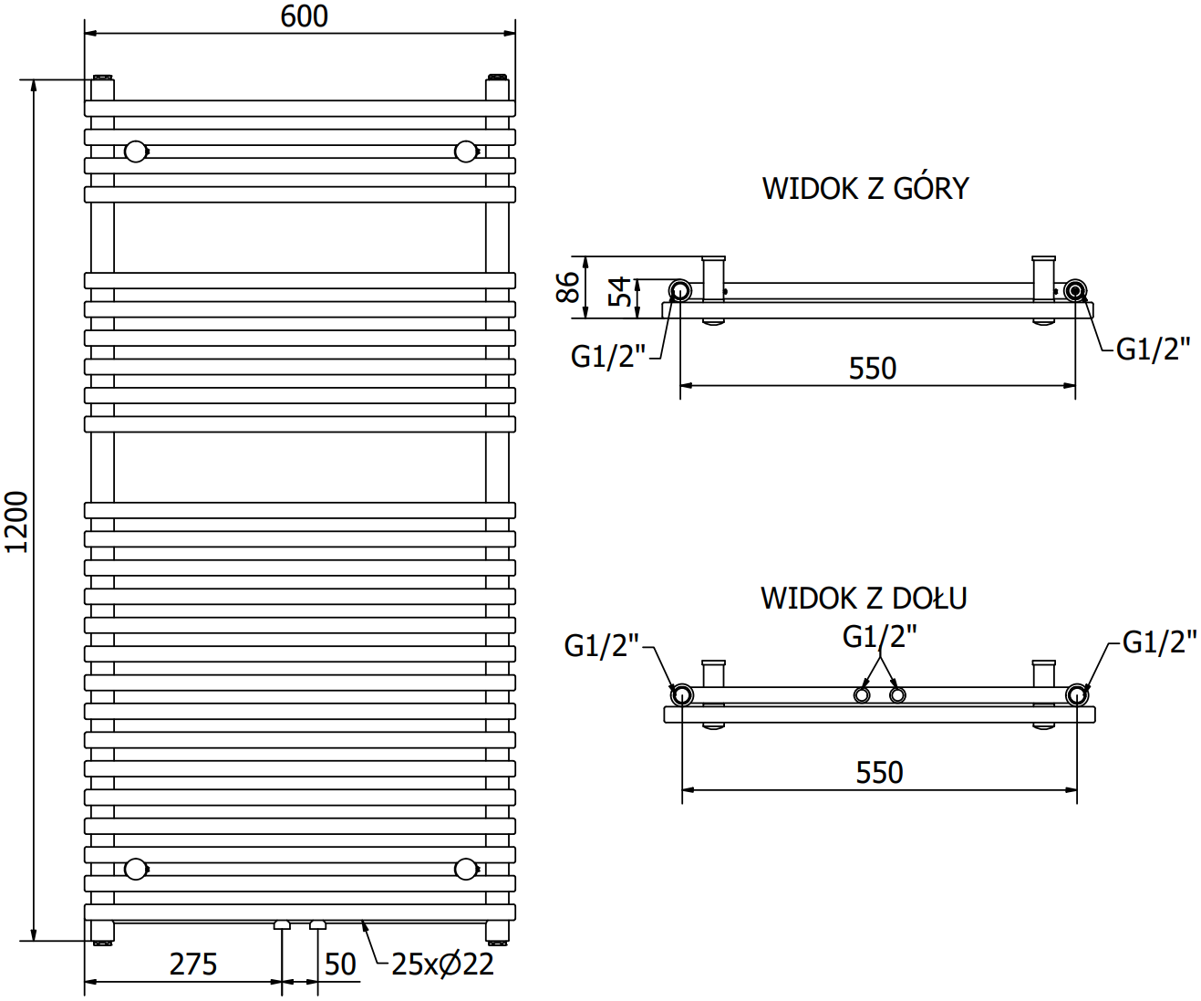 - 4xG ½″ no augšas un apakšas no labās vai kreisās puses