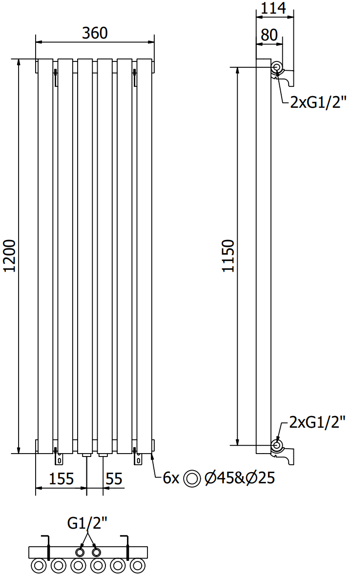 - 4xG ½″ no augšas un apakšas no labās vai kreisās puses