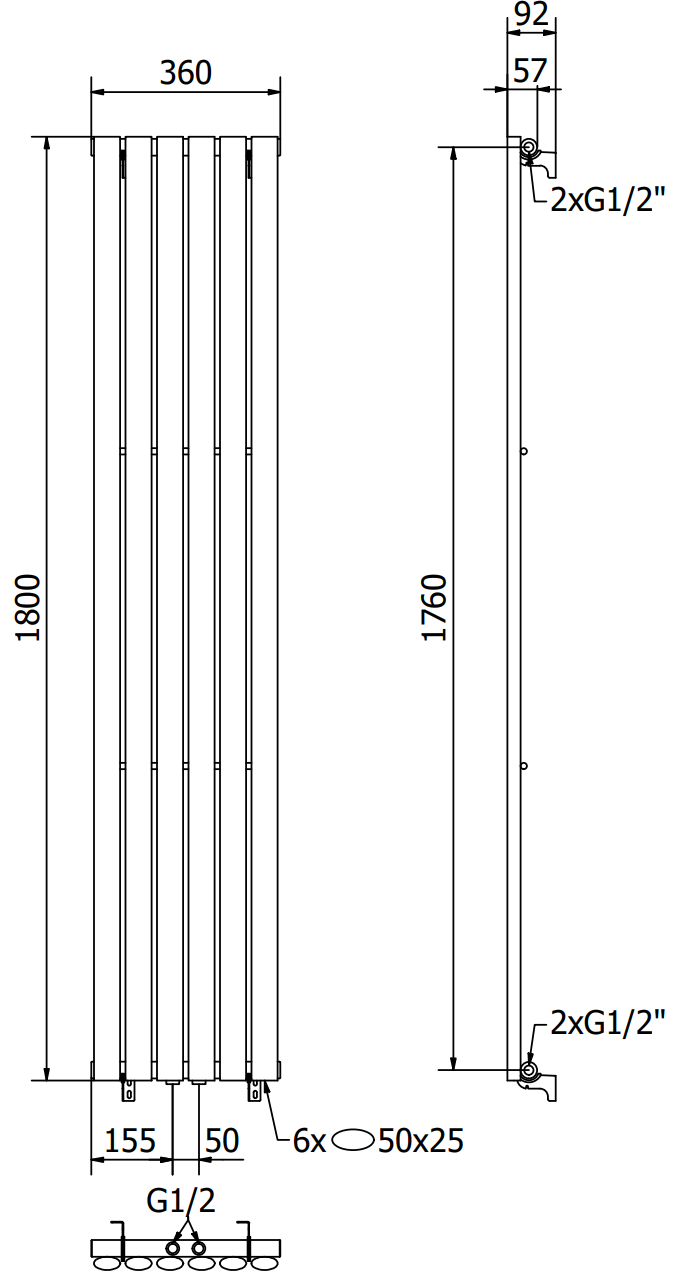 - 4xG ½″ no augšas un apakšas labajā vai kreisajā pusē