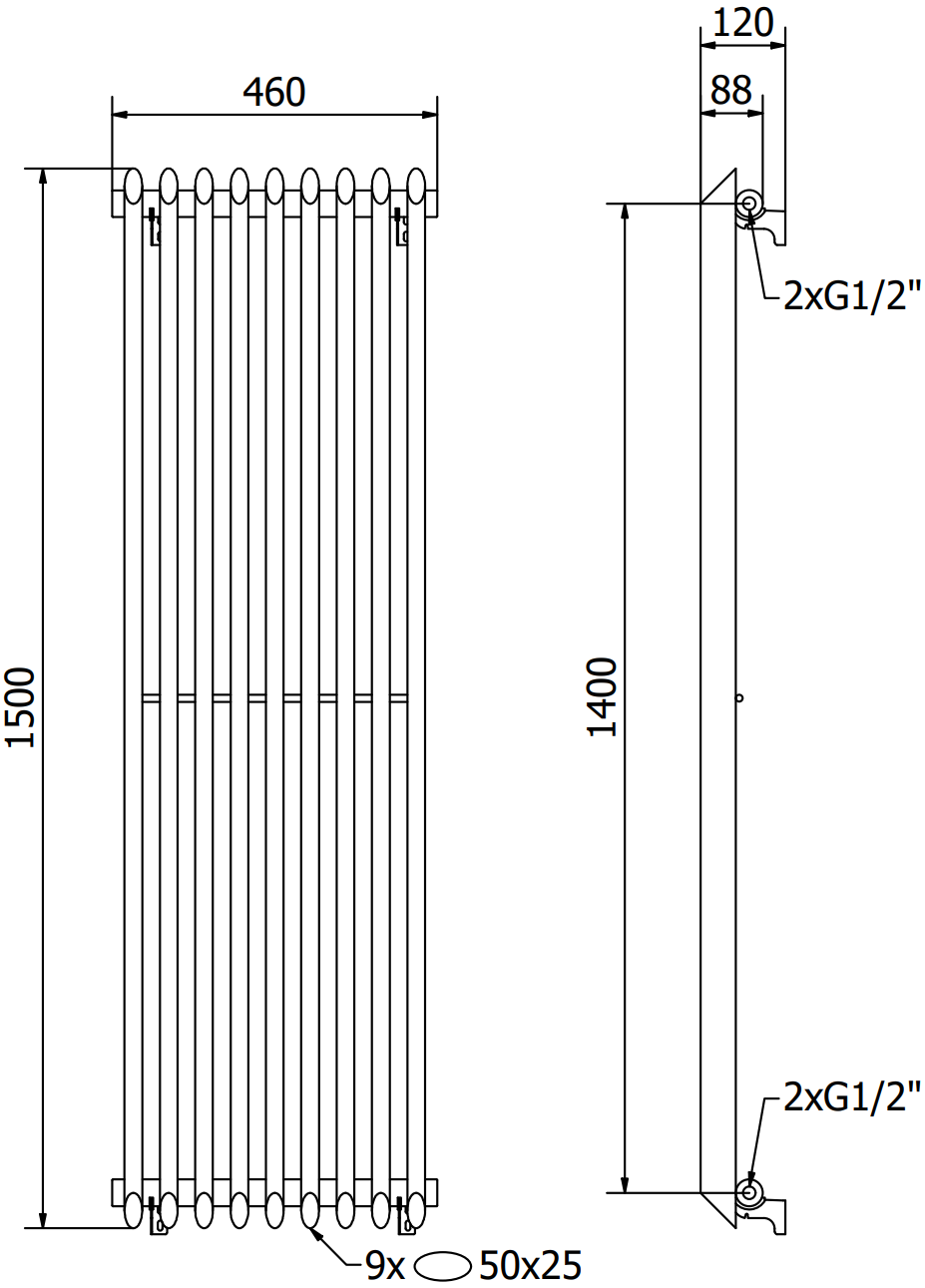 - 4xG ½″ no augšas un apakšas, labajā vai kreisajā pusē