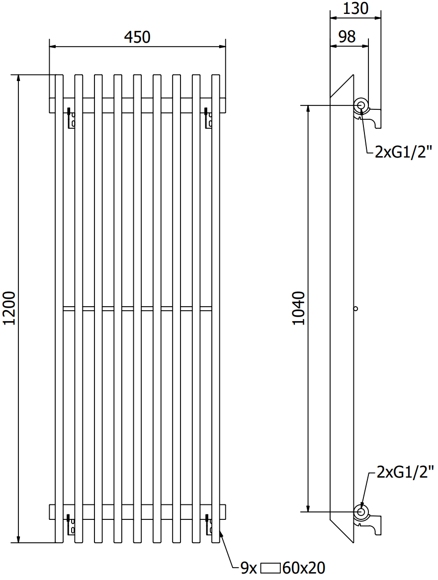 - 4xG ½″ no augšas un apakšas labajā vai kreisajā pusē