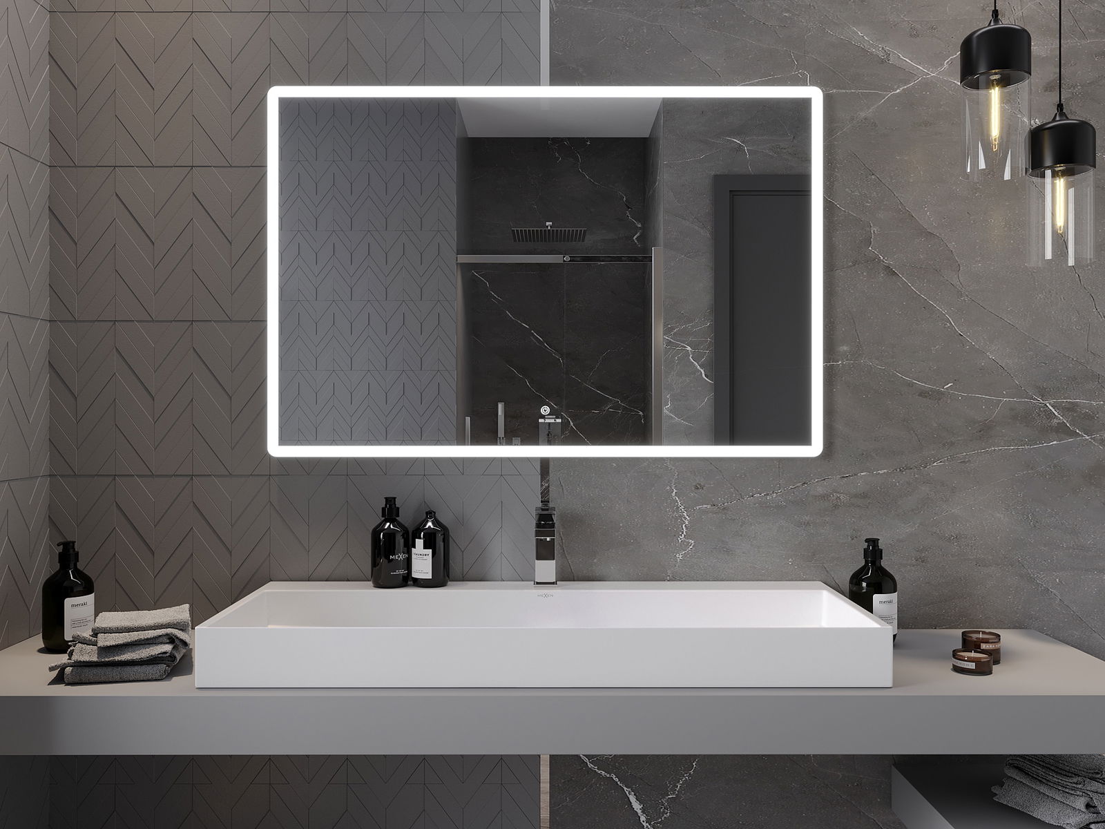 Aiz spoguļa tika sagatavots barošanas avots savienošanai ar sienas elektroinstalāciju. Tas ir praktisks risinājums, kas ļauj noslēpt vadus aiz spoguļa, nodrošinot estētisku un kārtīgu vannas istabas izskatu.