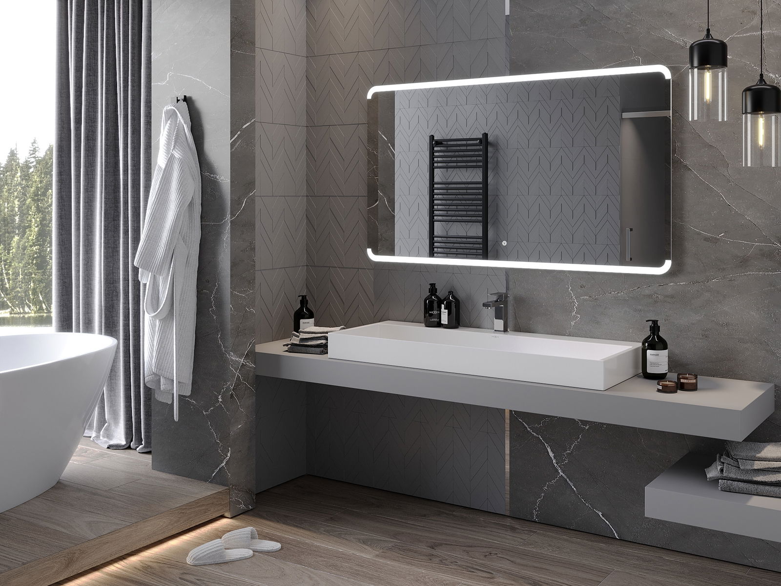 LED apgaismojums pie spoguļa ir praktisks elements, kas atvieglo ikdienas kopšanu un sniedz iespēju ideāli apgaismot seju. Apgaismojums piešķir vannasistabai modernu apdari, akcentējot tās eleganto interjeru.