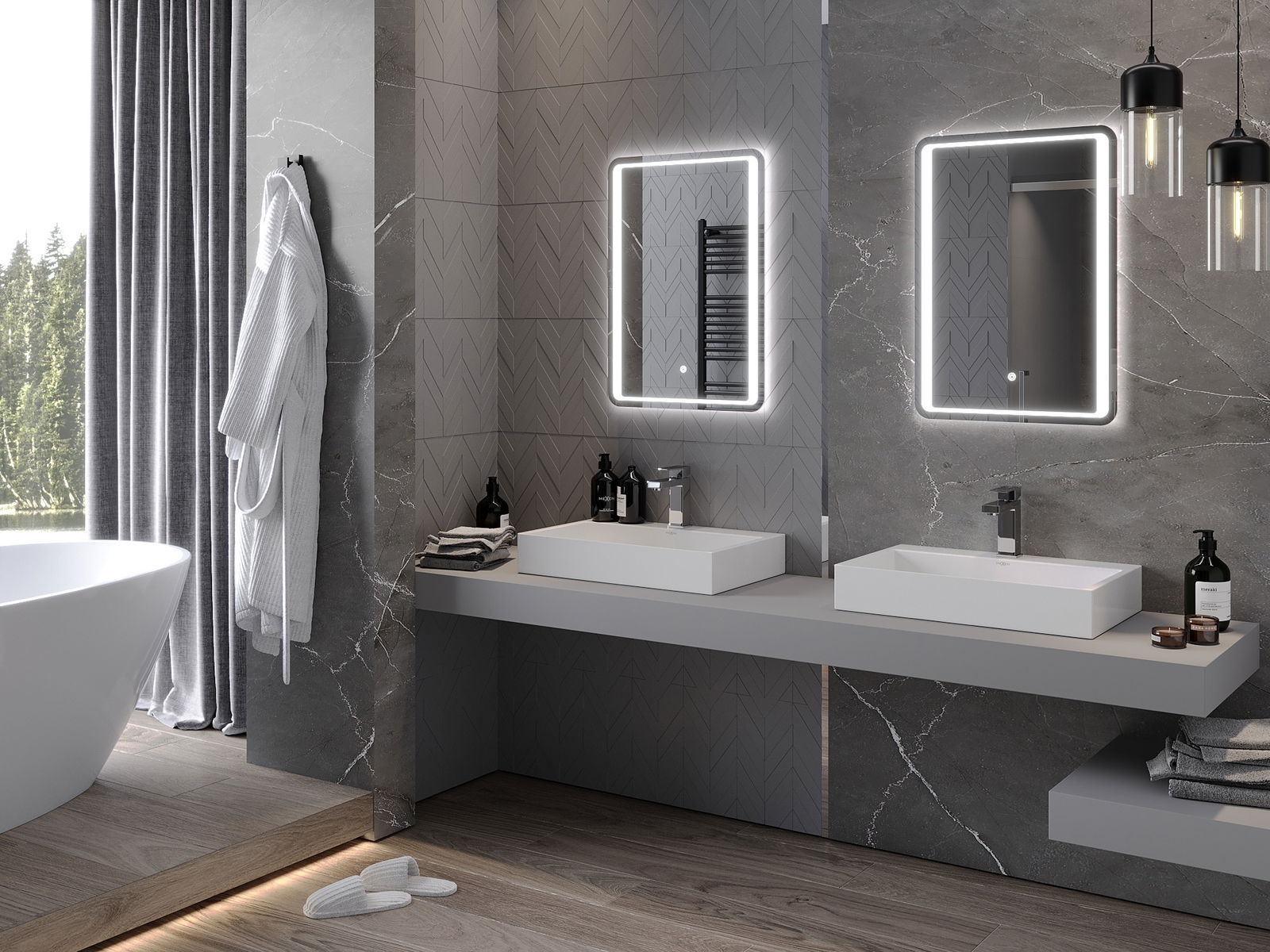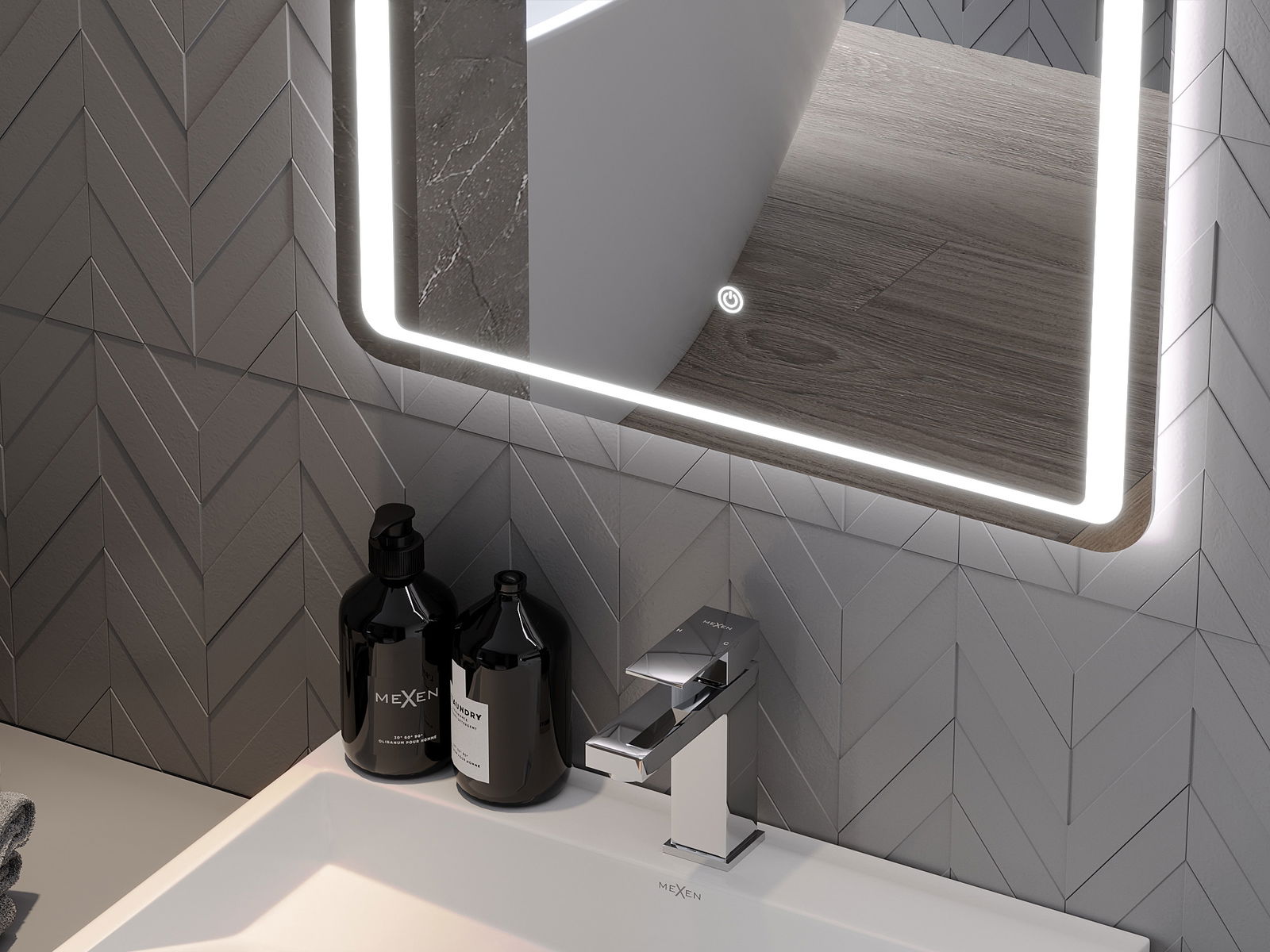 LED apgaismojums pie spoguļa ir praktisks elements, kas atvieglo ikdienas kopšanu un sniedz iespēju ideāli apgaismot seju. Apgaismojums piešķir vannasistabai modernu apdari, akcentējot tās eleganto interjeru.