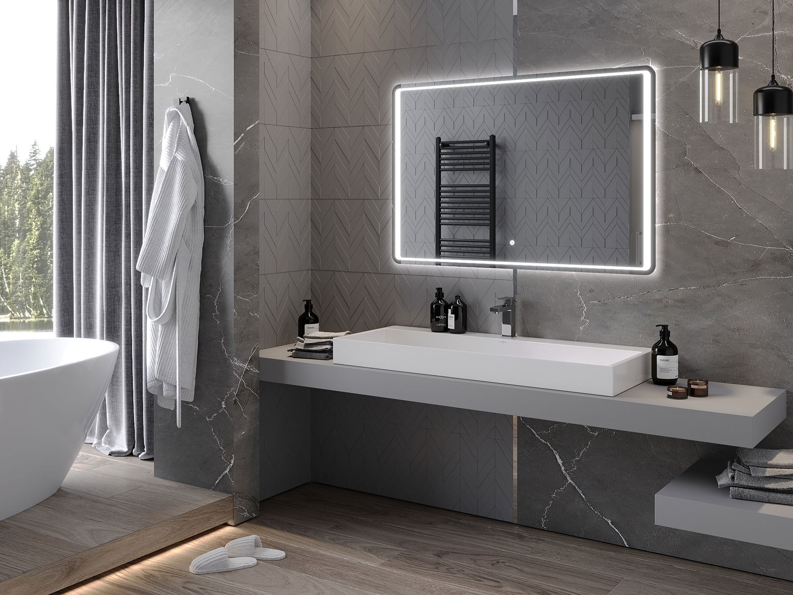 LED apgaismojums pie spoguļa ir praktisks elements, kas atvieglo ikdienas kopšanu un sniedz iespēju ideāli apgaismot seju. Apgaismojums piešķir vannasistabai modernu apdari, akcentējot tās eleganto interjeru.