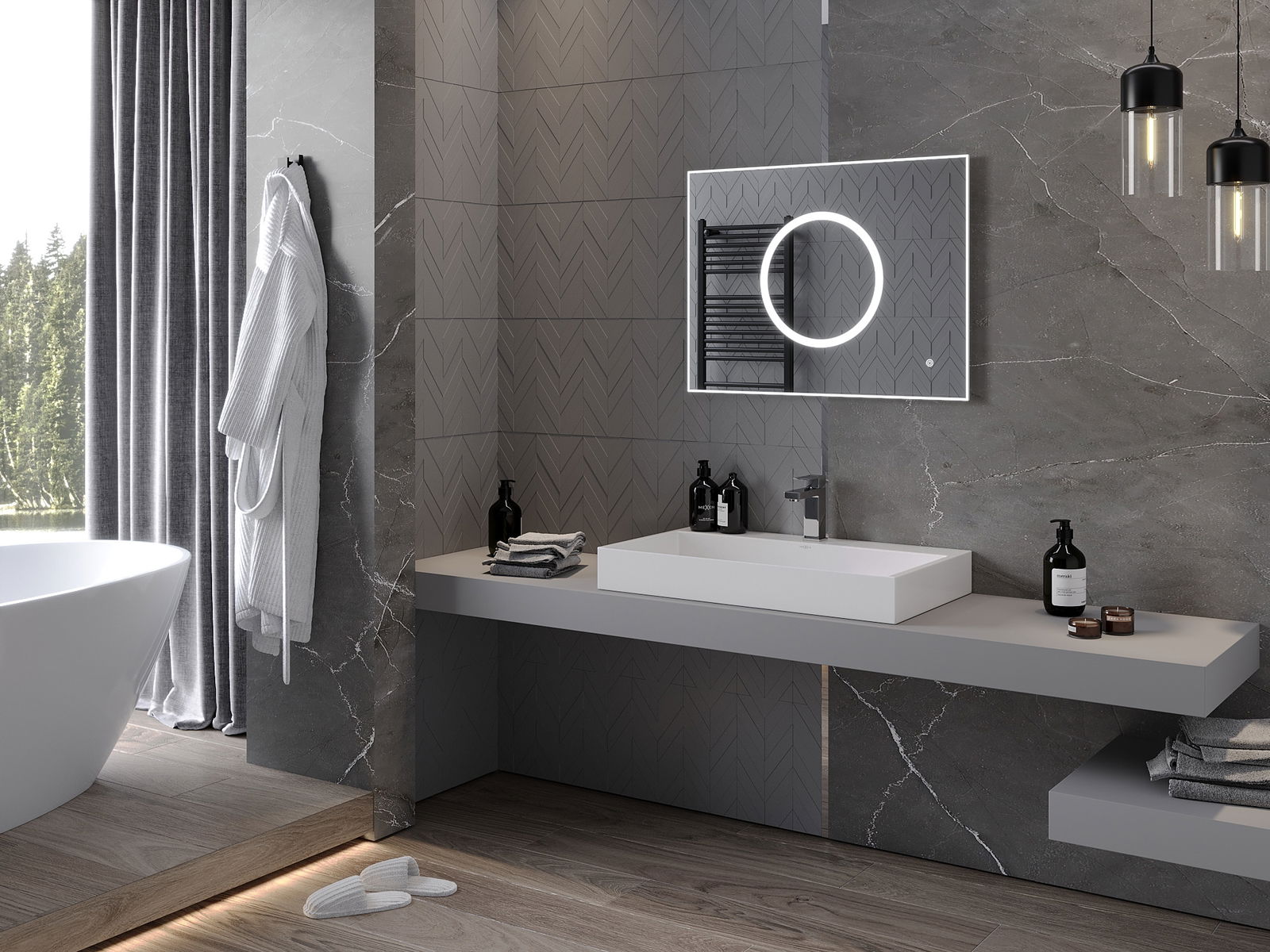Produkts ir aprīkots ar apsildāmo paklājiņu, kas neļauj spogulim aizsvīst, pat pēc ilgas un karstas vannas. Paklājiņš tiek aktivizēts, izmantojot apgaismojuma slēdzi, nodrošinot ērtumu un lietošanas vienkāršību.