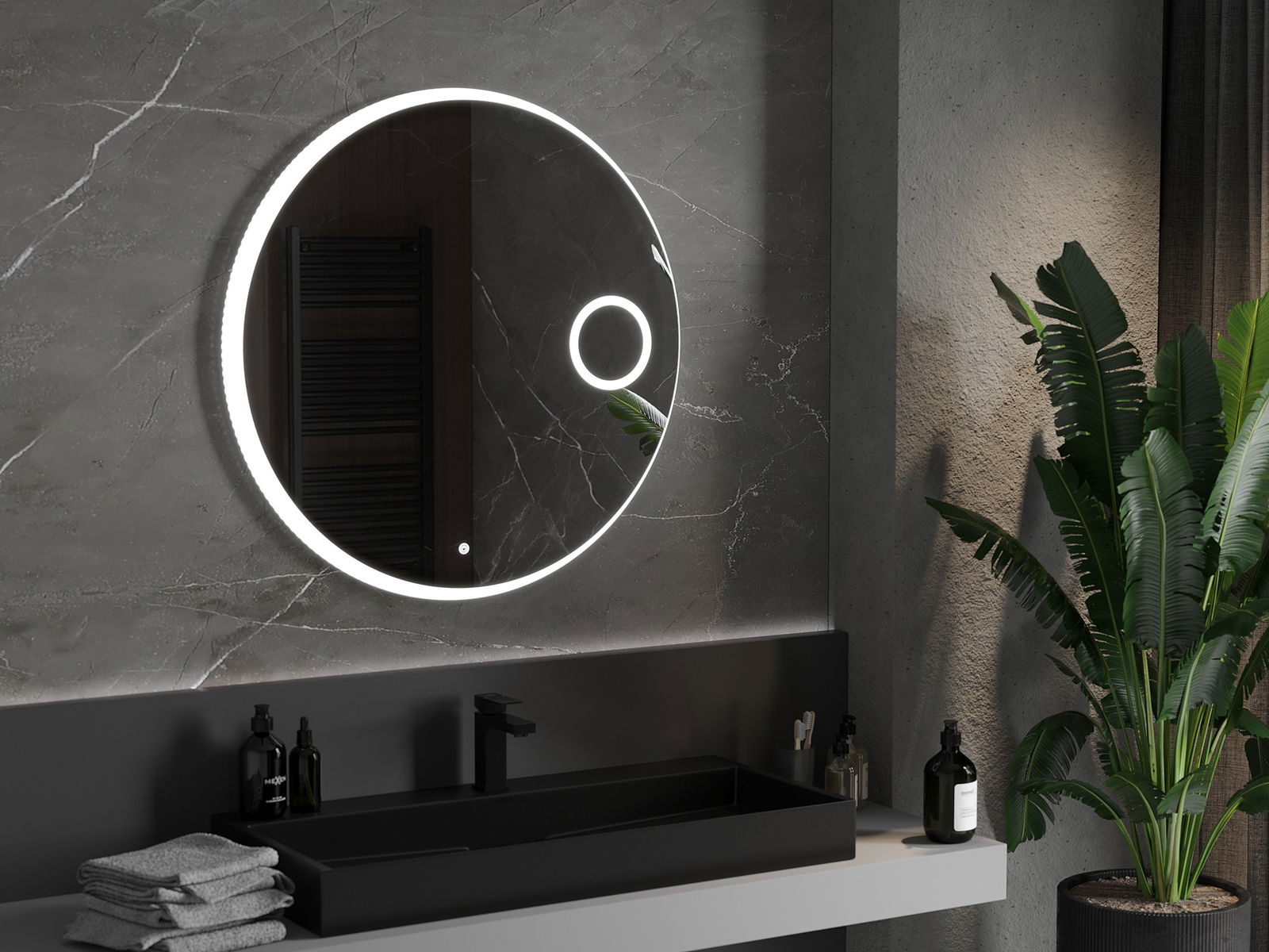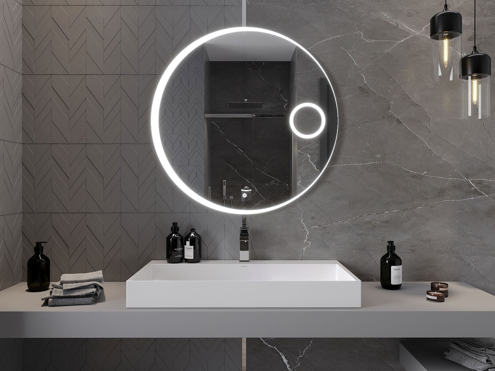 Mexen Ella apgaismots vannas istabas spogulis ar kosmētikas spoguli, apaļš 90 cm, LED 6000K, pretmiglas - 9811-090-090-611-00