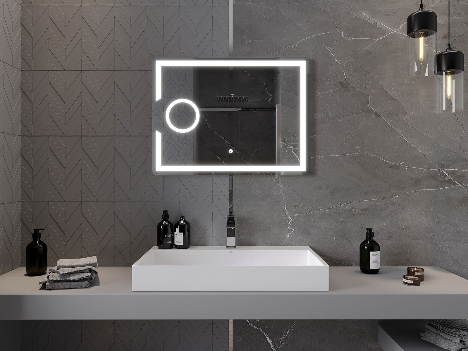 Spoguli var izgaismot vienkārši un ērti, pieskaroties uz spoguļa virsmas esošajam slēdzim. Tas ļauj ātri apgaismot, bez nepieciešamības meklēt tālāk novietoto tradicionālo apgaismojuma slēdzi.