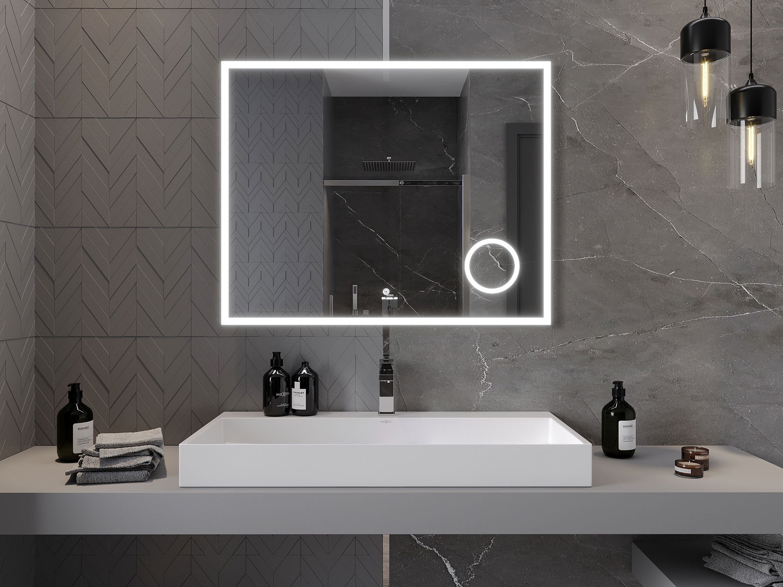 LED apgaismojums pie spoguļa ir praktisks elements, kas atvieglo ikdienas kopšanu un sniedz iespēju ideāli apgaismot seju. Apgaismojums piešķir vannasistabai modernu apdari, akcentējot tās eleganto interjeru.