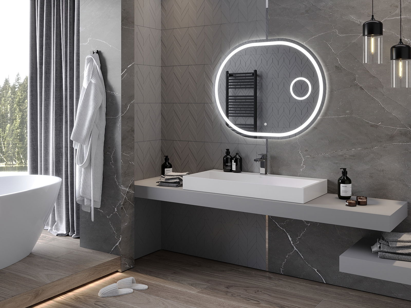 LED apgaismojums pie spoguļa ir praktisks elements, kas atvieglo ikdienas kopšanu un sniedz iespēju ideāli apgaismot seju. Apgaismojums piešķir vannasistabai modernu apdari, akcentējot tās eleganto interjeru.