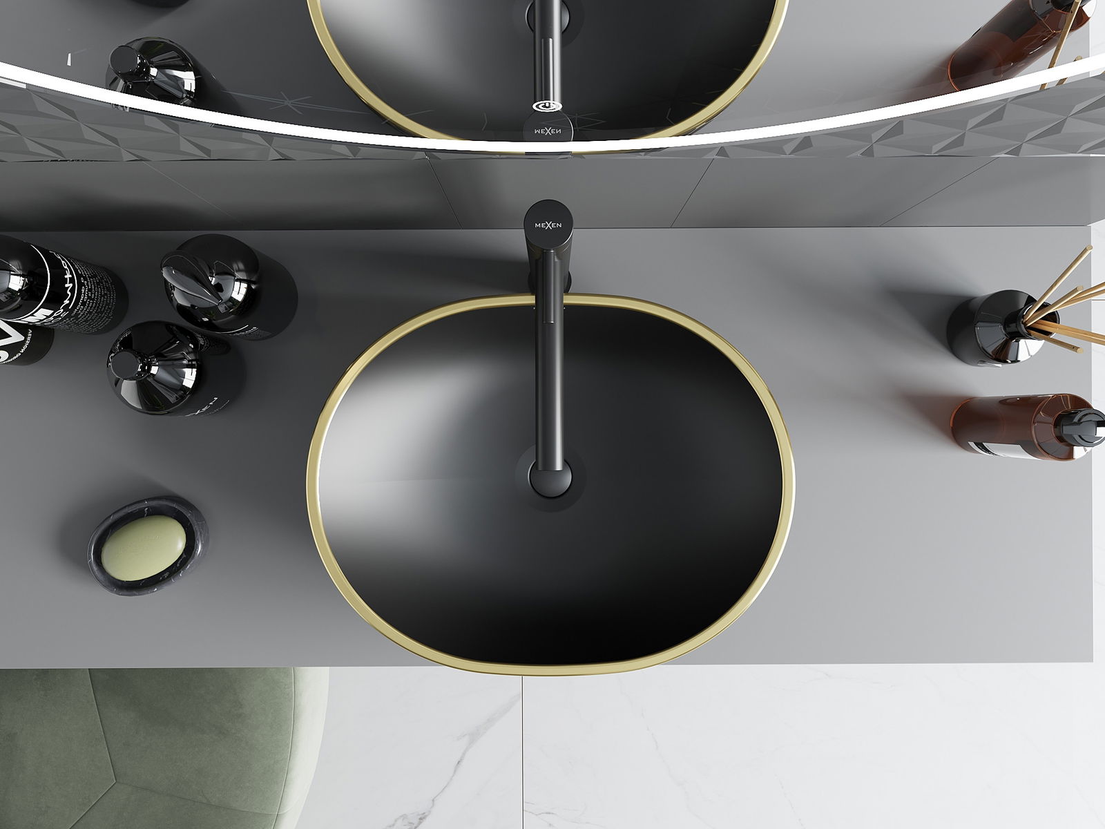 Mexen Viki virsmas izlietne 48 x 35 cm, melna matēta/zelta rūtiņu raksts - 21054879