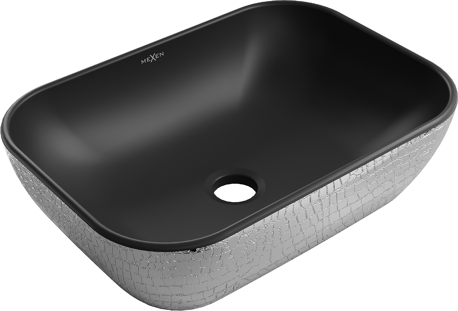 Mexen Rita virs galda izlietne 45 x 32 cm, melna matēta/sudraba zvīņu raksts - 21084572