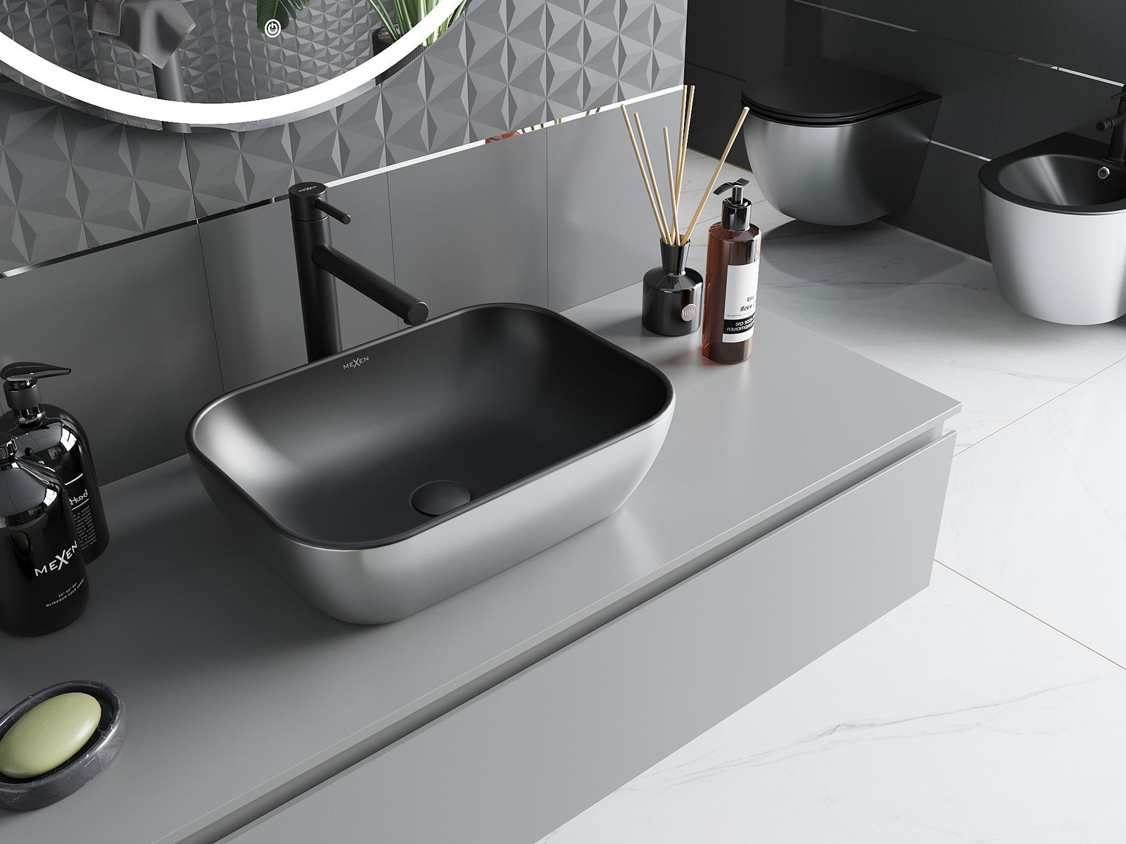 Mexen Rita uz virsmas uzstādīts izlietne 45 x 32 cm, melna matēta/sudraba - 21084574