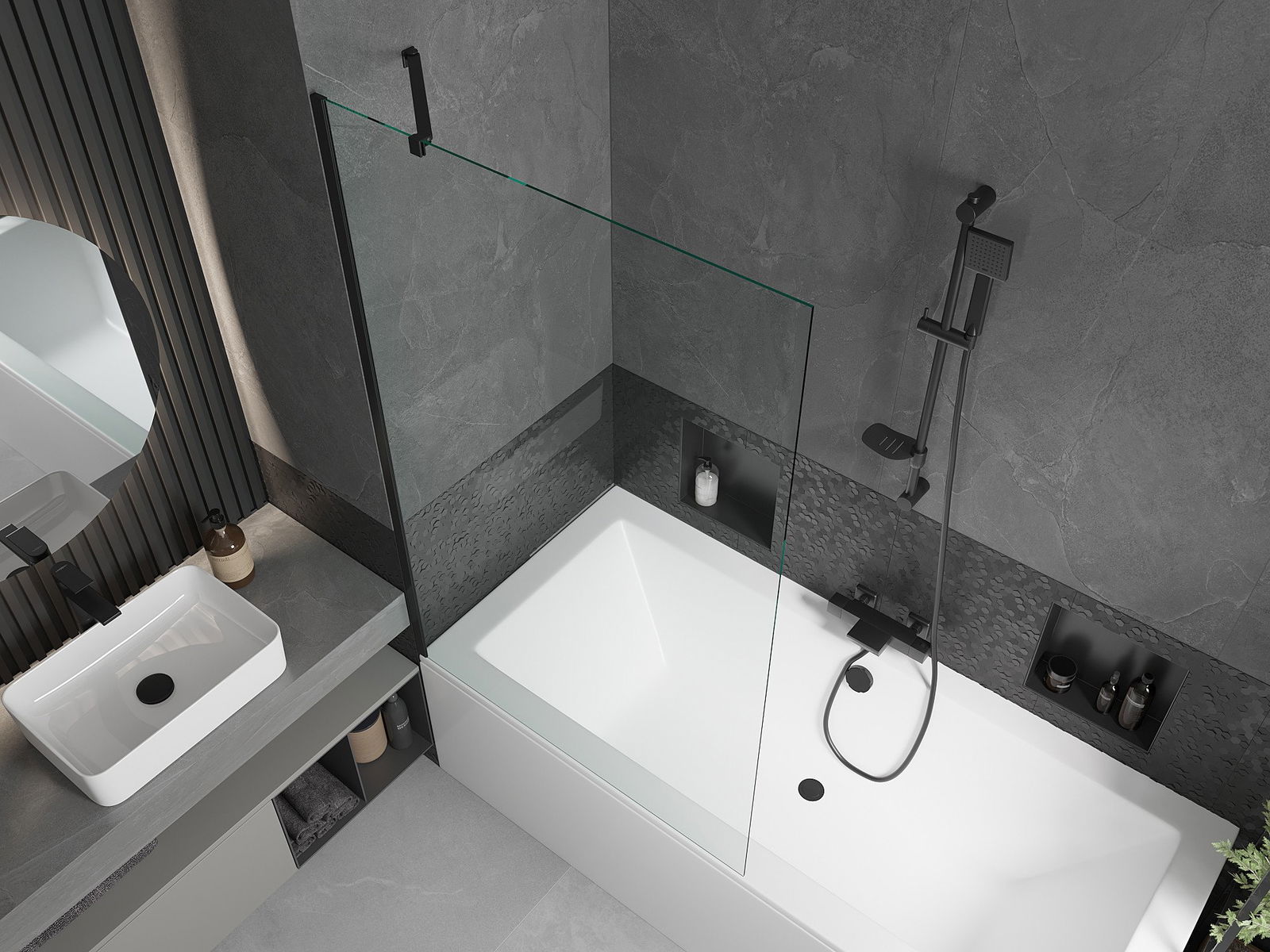 Efektīva aizsardzība pret ūdens izšļakstīšanos peldēšanās laikā. Ekrānam ir blīves, kas ideāli pielāgojas stikla virsmai un vannas malai. Funkcionāls risinājums, kas nodrošina drošību un vieglu tīrību.