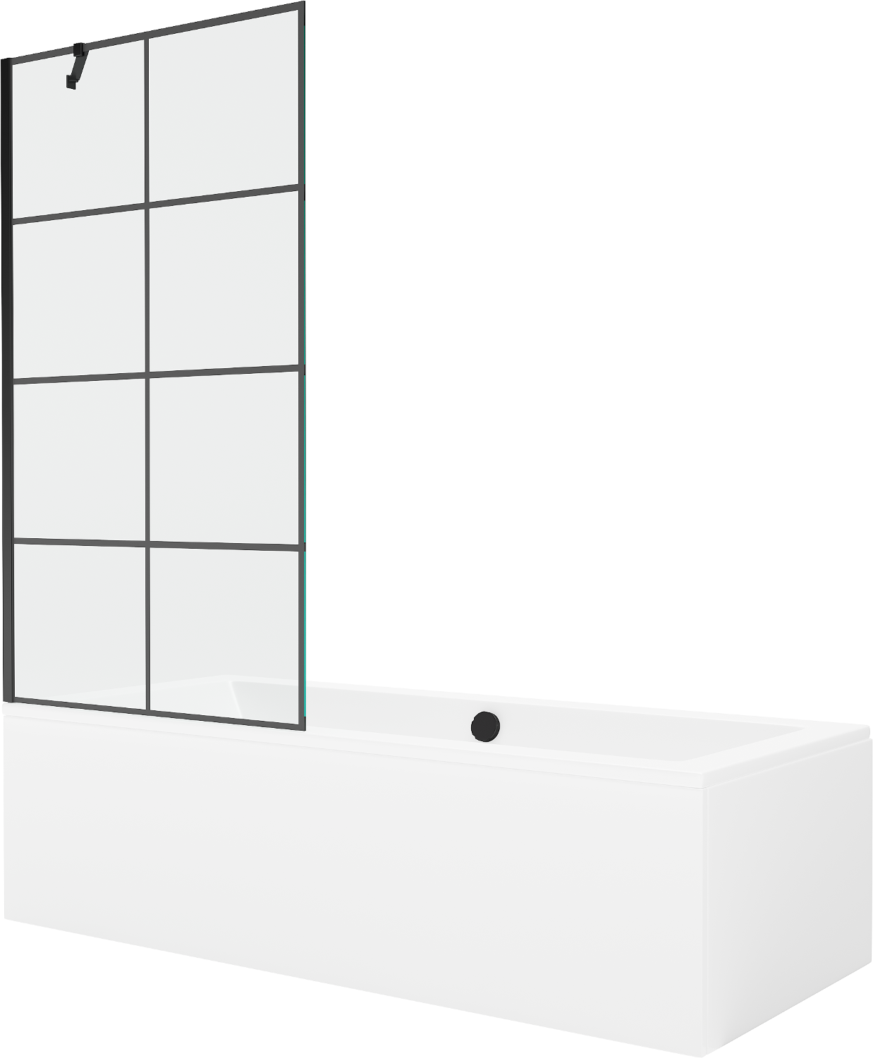 Mexen Cube taisnstūra vanna 180 x 80 cm ar pārklāju un vienas durvis pārklāju 90 cm, melns raksts - 550518080X9509007077