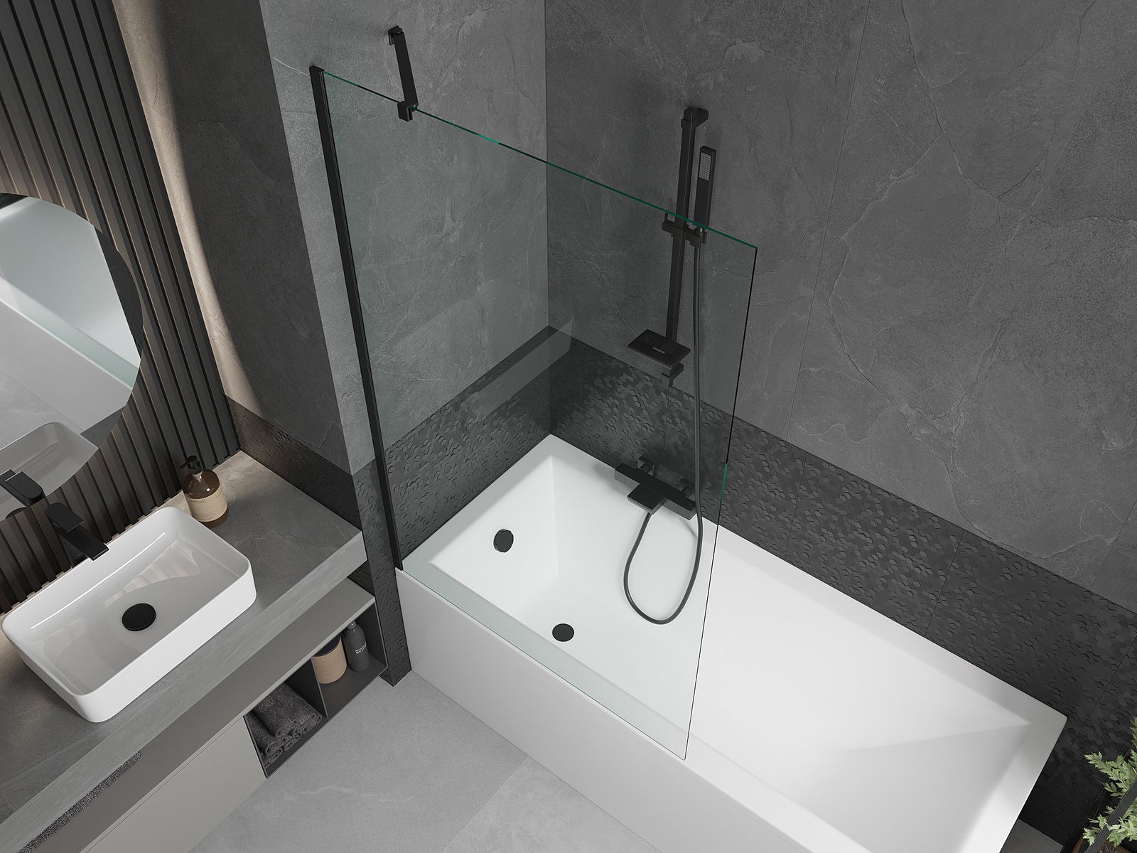 Mexen Cubik taisnstūrveida vanna 150 x 70 cm ar pārsegu un vienas daļas ekrānu 100 cm, caurspīdīga, melna
