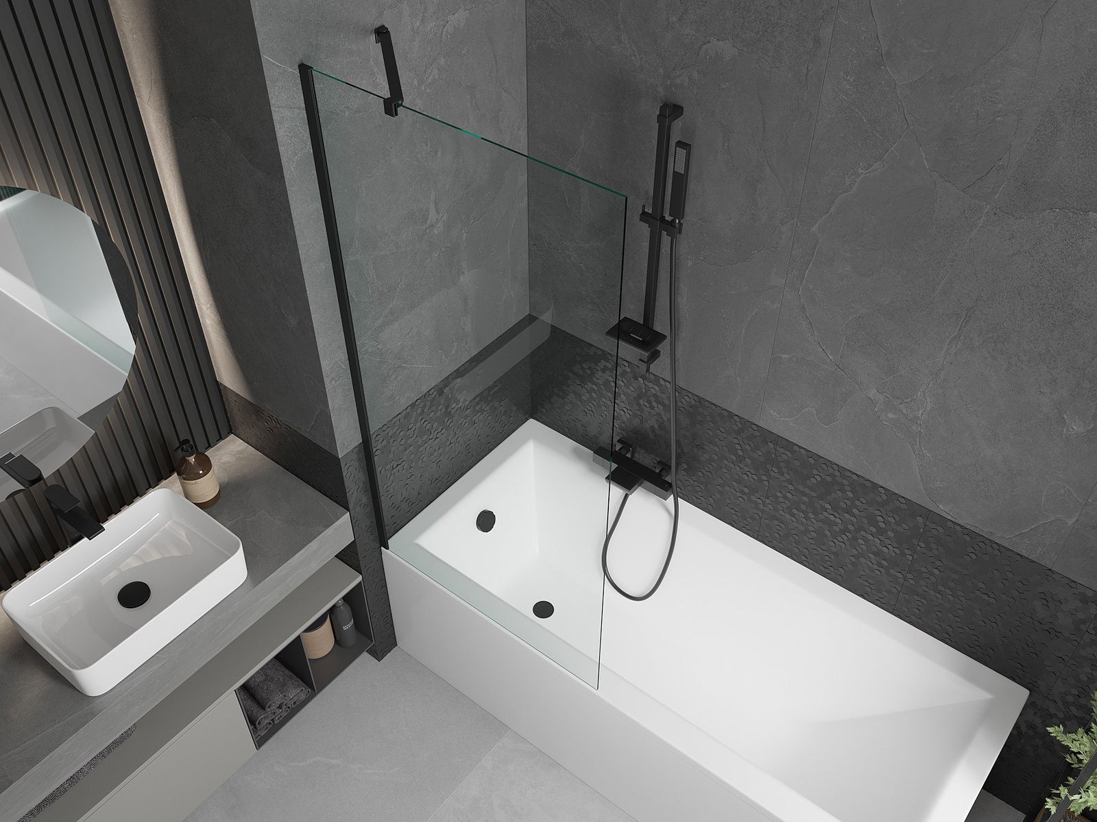 Mexen Cubik taisnstūra vanna 160 x 70 cm ar apdari un 1-sparu sienu 80 cm, caurspīdīgs, melns - 550316070X9508000070