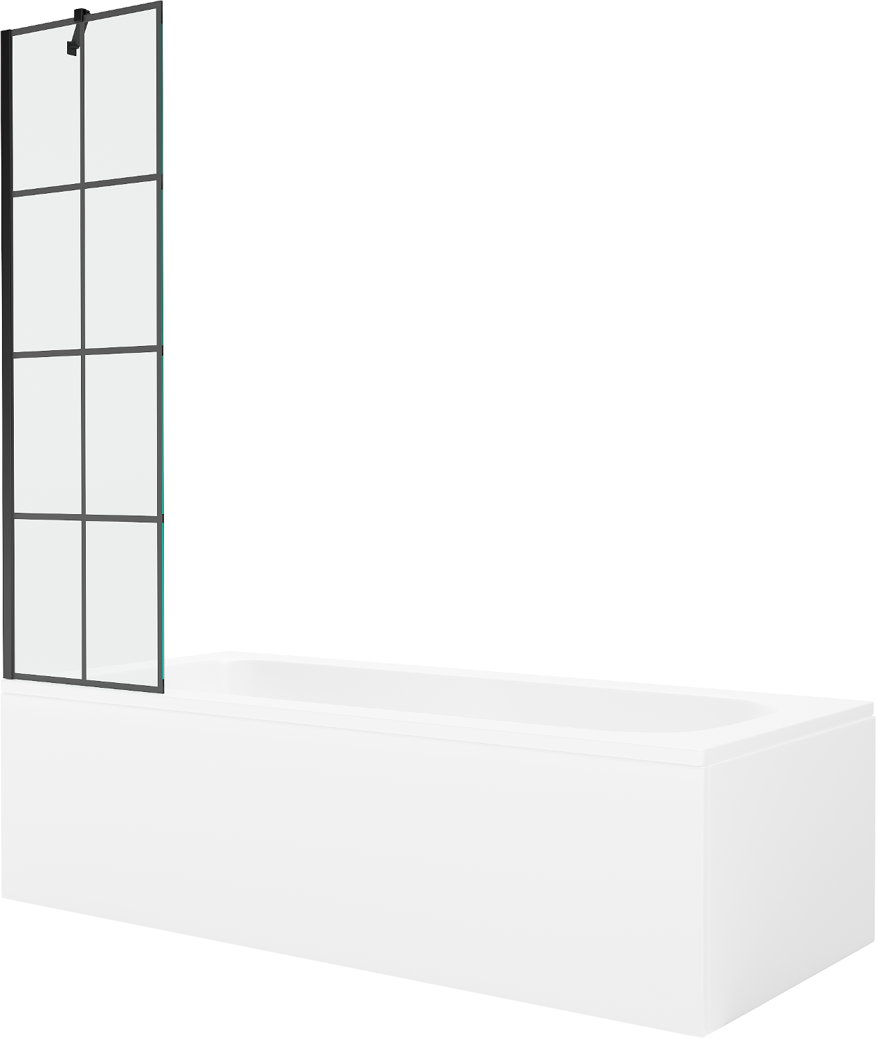 Mexen Vega taisnstūrveida vanna 150 x 70 cm ar apdari un 1-durvju ekrānu 50 cm, melns raksts - 550115070X9505007077