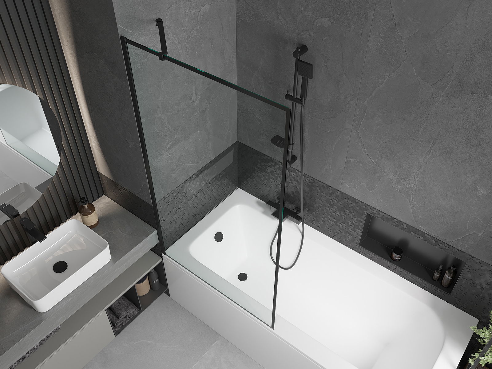 Efektīva aizsardzība pret ūdens izšļakstīšanos peldēšanās laikā. Ekrānam ir blīves, kas ideāli pielāgojas stikla virsmai un vannas malai. Funkcionāls risinājums, kas nodrošina drošību un vieglu tīrību.