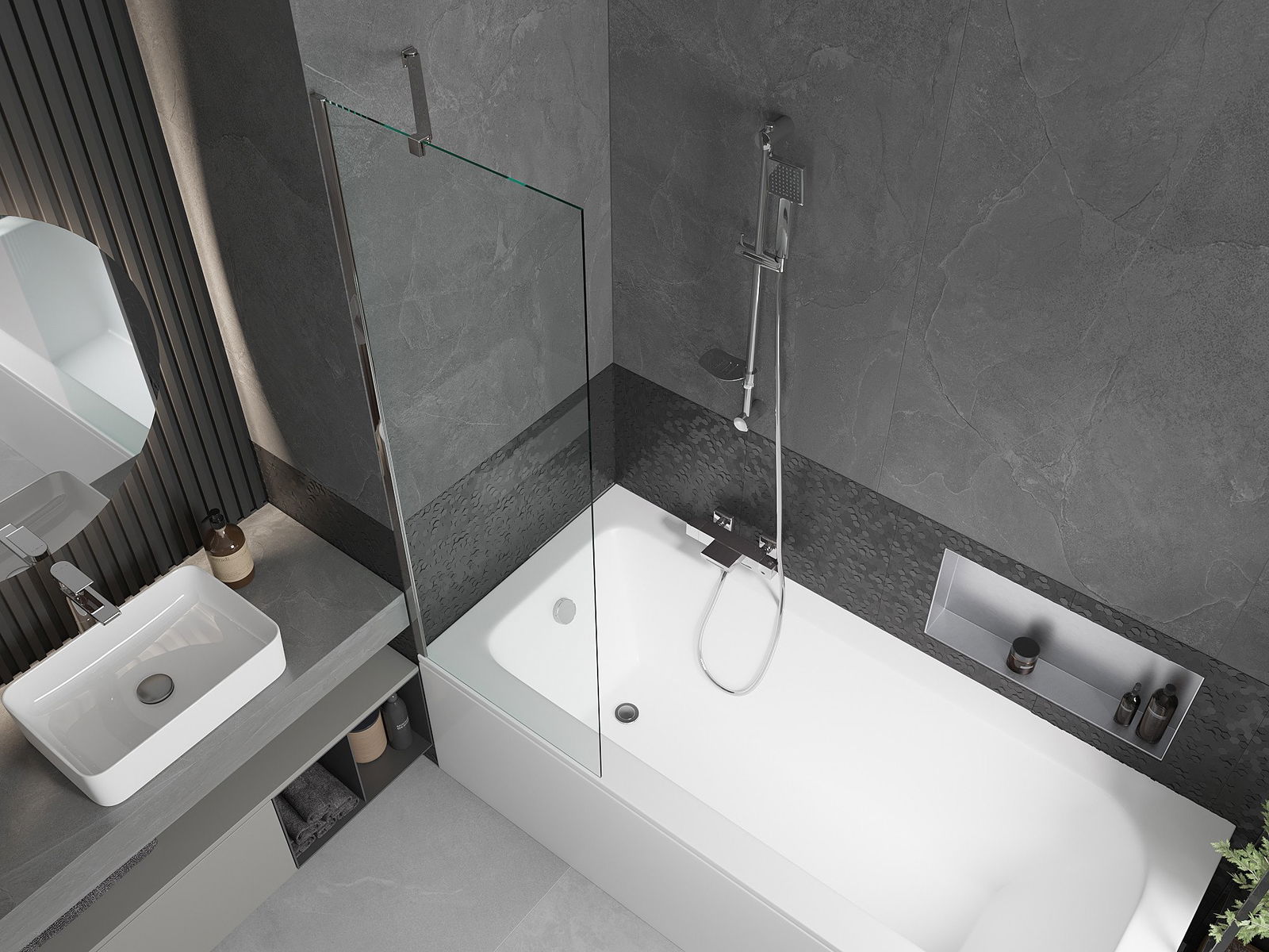 Efektīva aizsardzība pret ūdens izšļakstīšanos peldēšanās laikā. Ekrānam ir blīves, kas ideāli pielāgojas stikla virsmai un vannas malai. Funkcionāls risinājums, kas nodrošina drošību un vieglu tīrību.