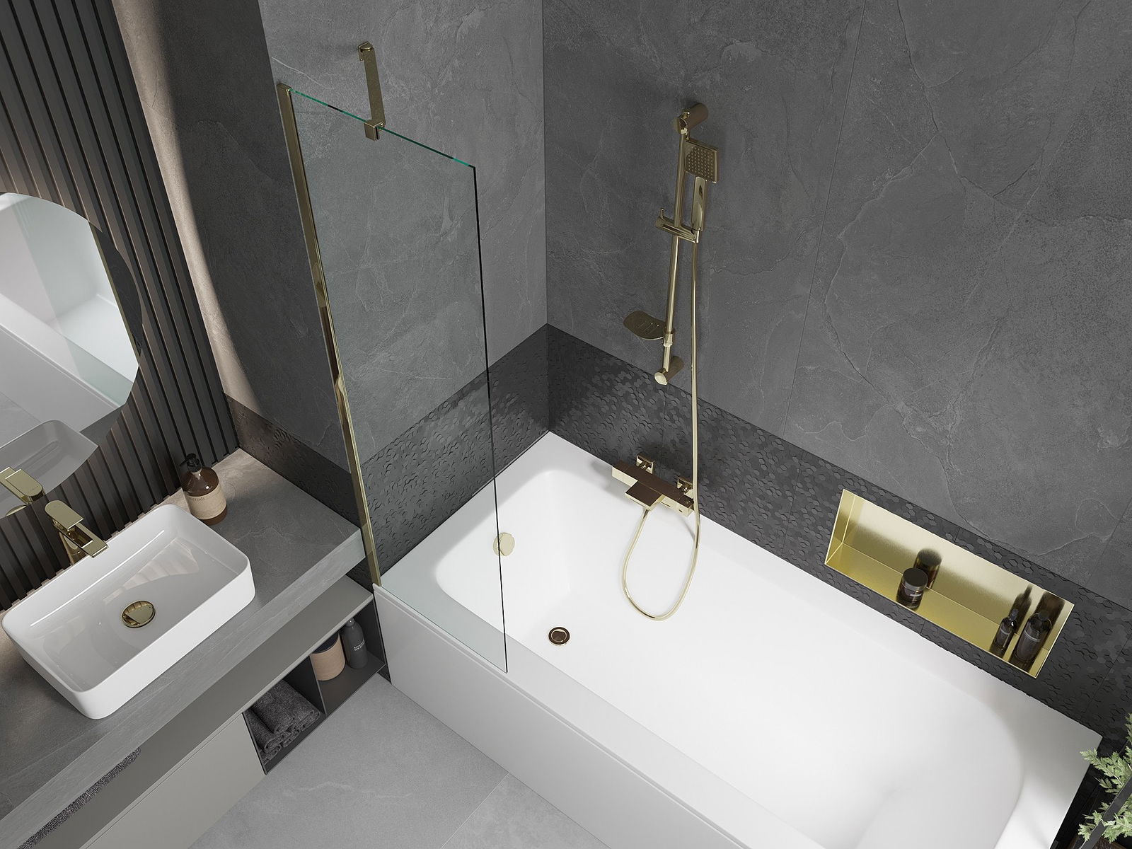 Mexen Vega taisnstūra vanna 180 x 80 cm ar apdari un 1-durvju paravānu 50 cm, caurspīdīgs, zelta - 550118080X9505000050