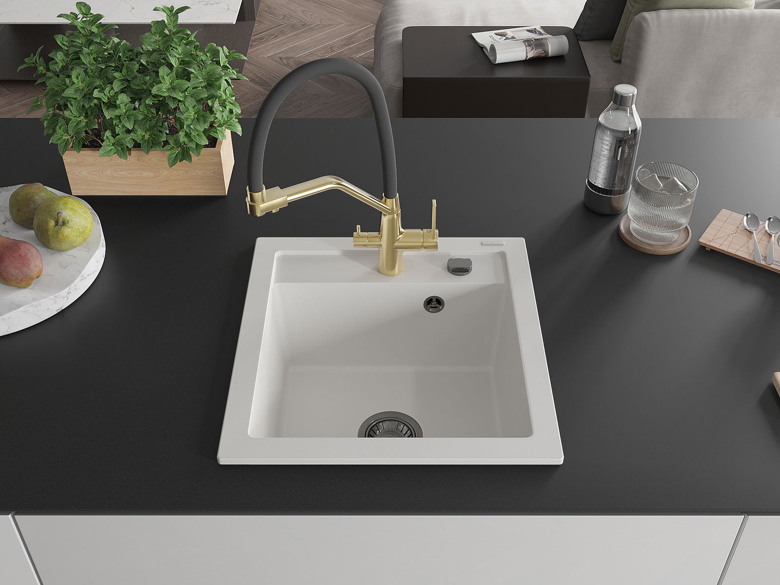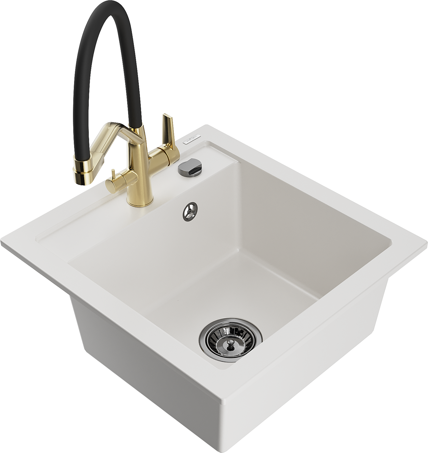 Mexen Vito granitē izlietne ar 1 nodalījumu un virtuves krānu Duo, balta - 6503-20-671701-57-B