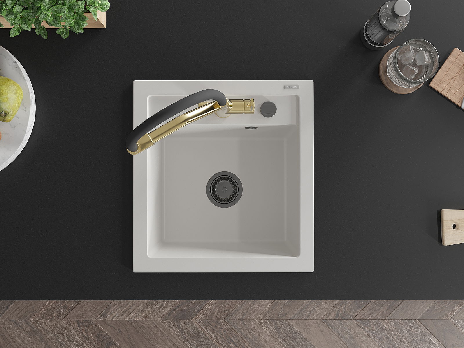 Izlietnei ir padziļināts caurums ar diametru 35 mm, kuru varat izsist patstāvīgi. To var izmantot, piemēram, šķidruma dozatora uzstādīšanai, kas novērsīs plastmasas pudeļu klātbūtni virtuvē un piešķirs tai elegantu apdari.