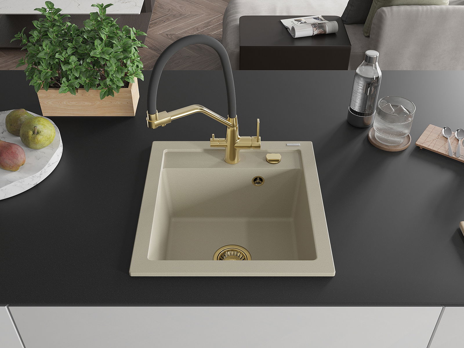 Mexen Vito granit izlietne ar vienu nodalījumu un Duo virtuves maisītāju, bēša - 6503-69-671701-57-G