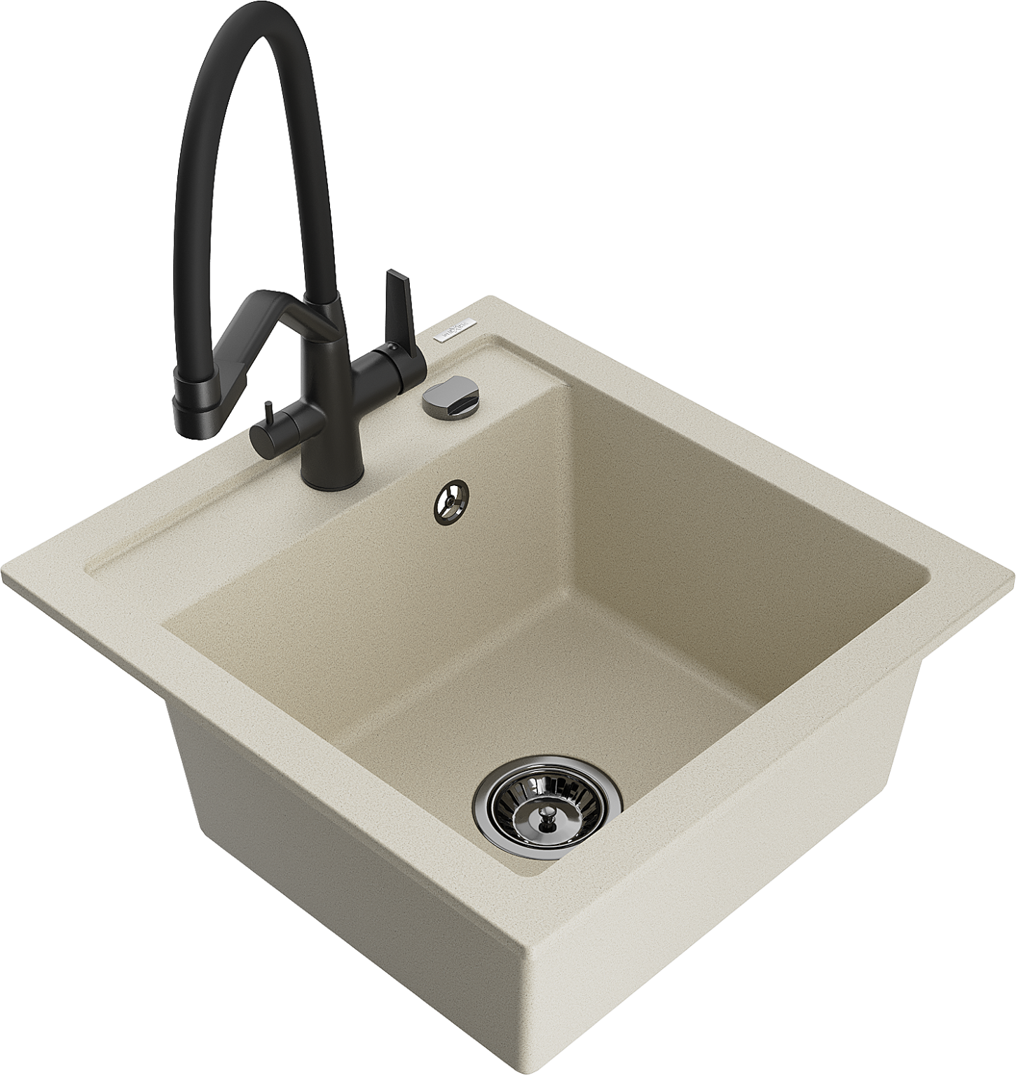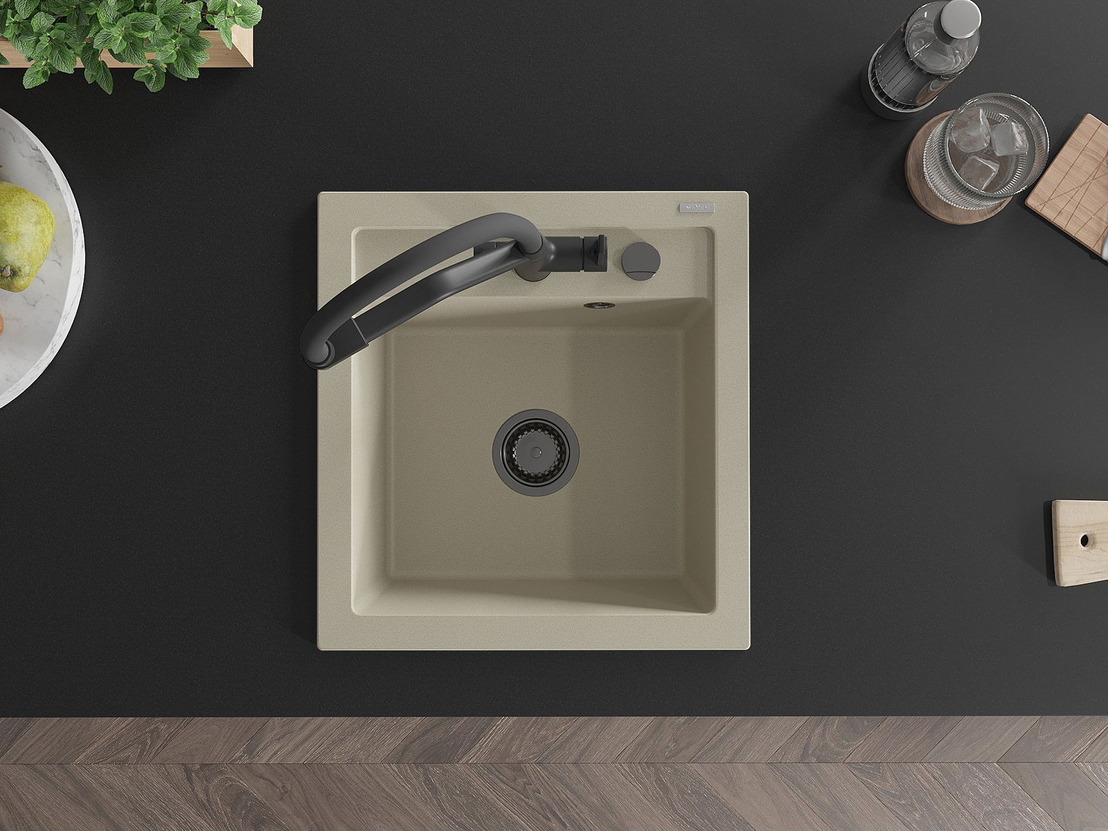Mexen Vito granīta virtuves izlietne ar vienu nodalījumu un divu krānu, bēša - 6503-69-671701-70-B