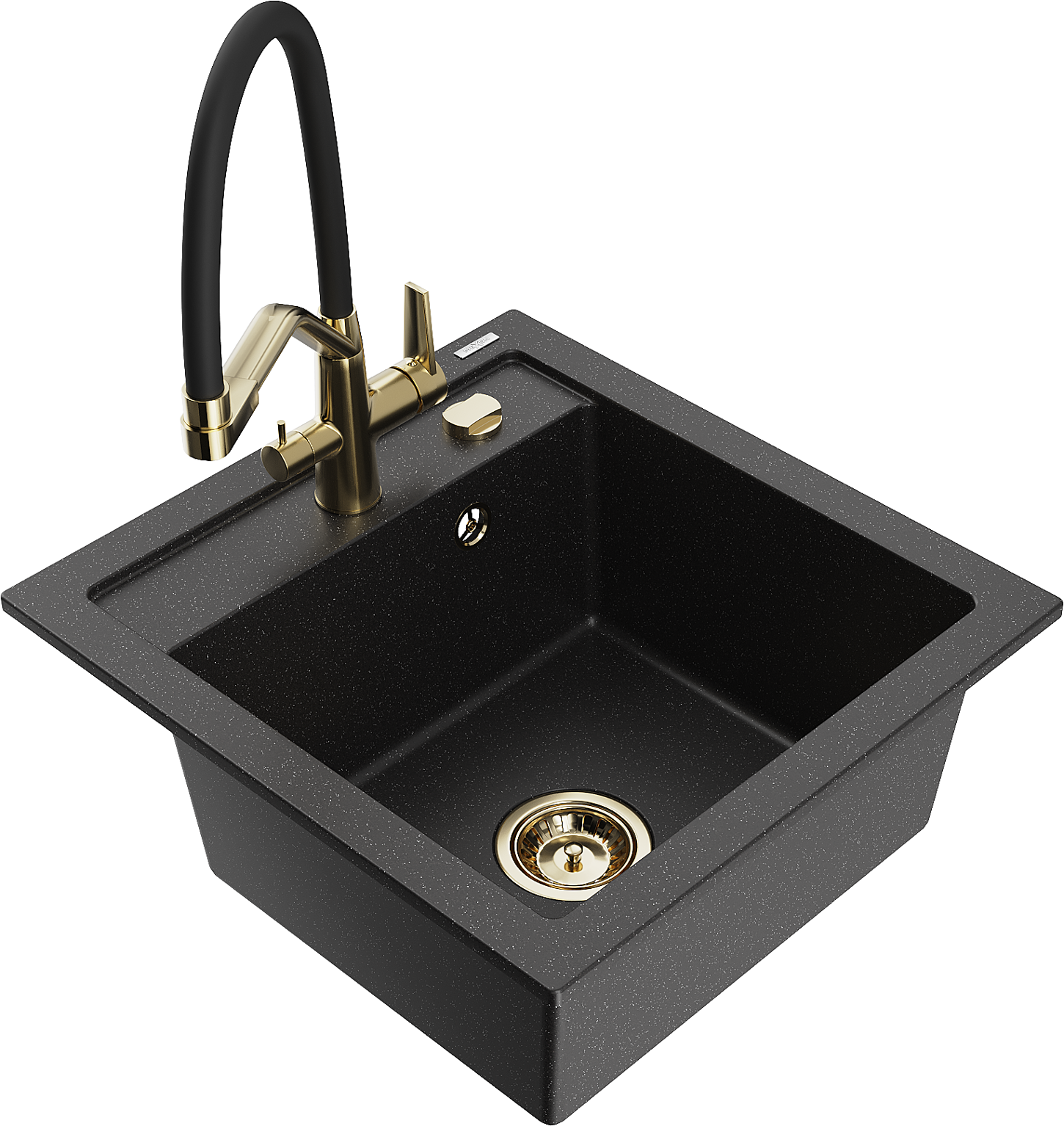 Mexen Vito granitizlietne viena nodalījuma ar virtuves jaucējkrānu Duo, melns/sudraba metālisks - 6503-73-671701-57-G