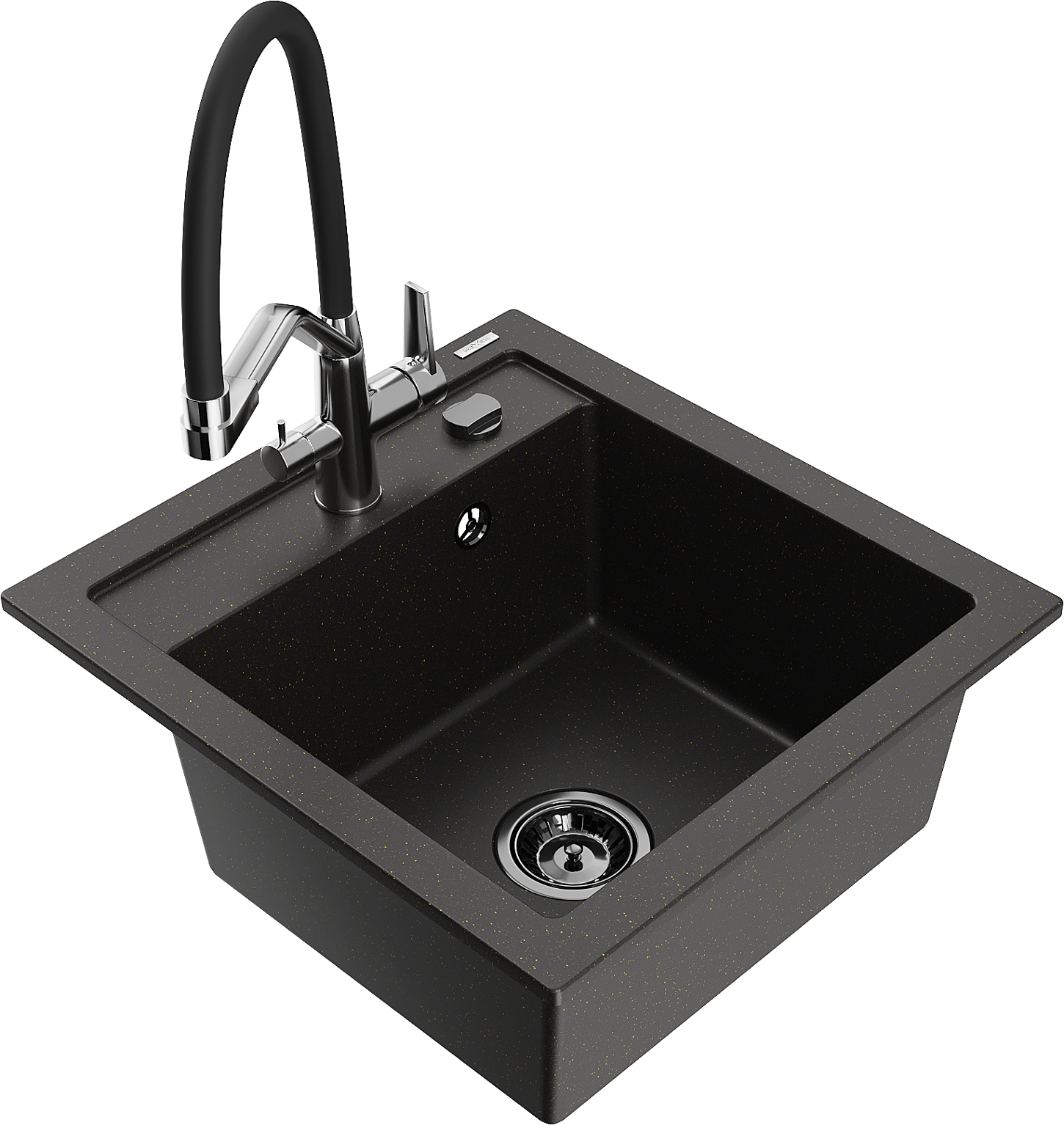 Mexen Vito Granīta izlietne ar vienu nodalījumu un virtuves jaucējkrānu Duo, melna/zeltīta metālisks - 6503-75-671701-07-B