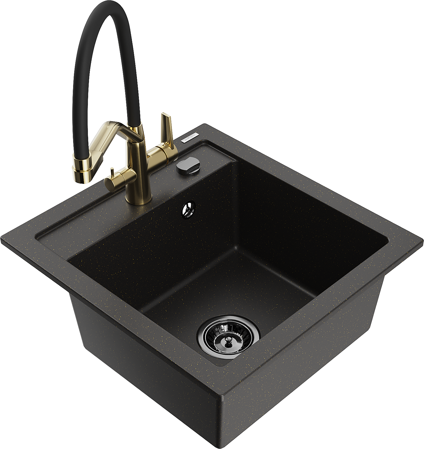 Mexen Vito granitē izlietne ar 1 kameru un virtuves jaucējkrānu Duo, melna/zeltīta metāla - 6503-75-671701-57-B