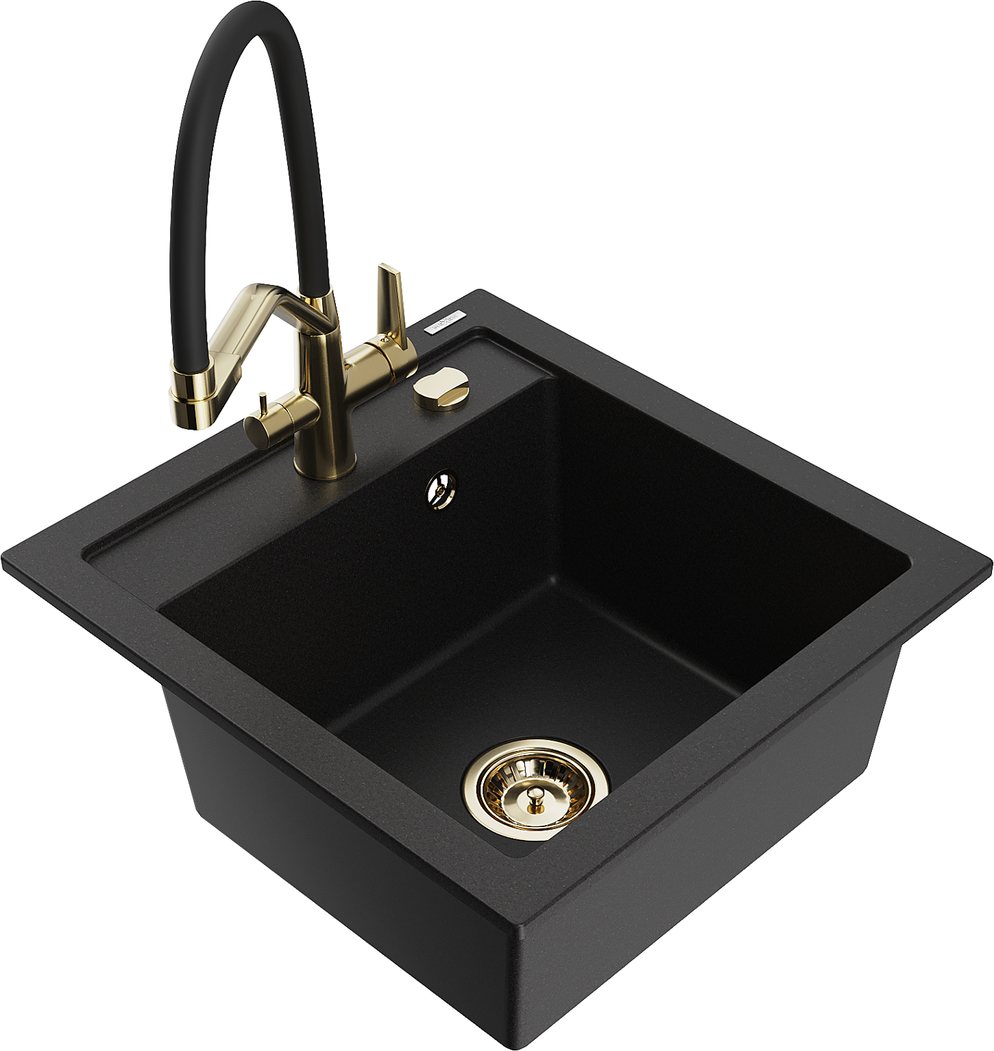 Mexen Vito granitizlietne ar vienu bļodu un virtuves maisītāju Duo, melns - 6503-77-671701-57-G