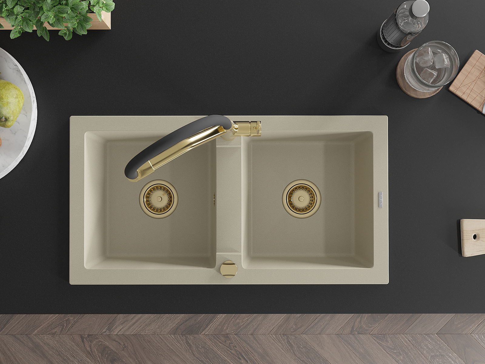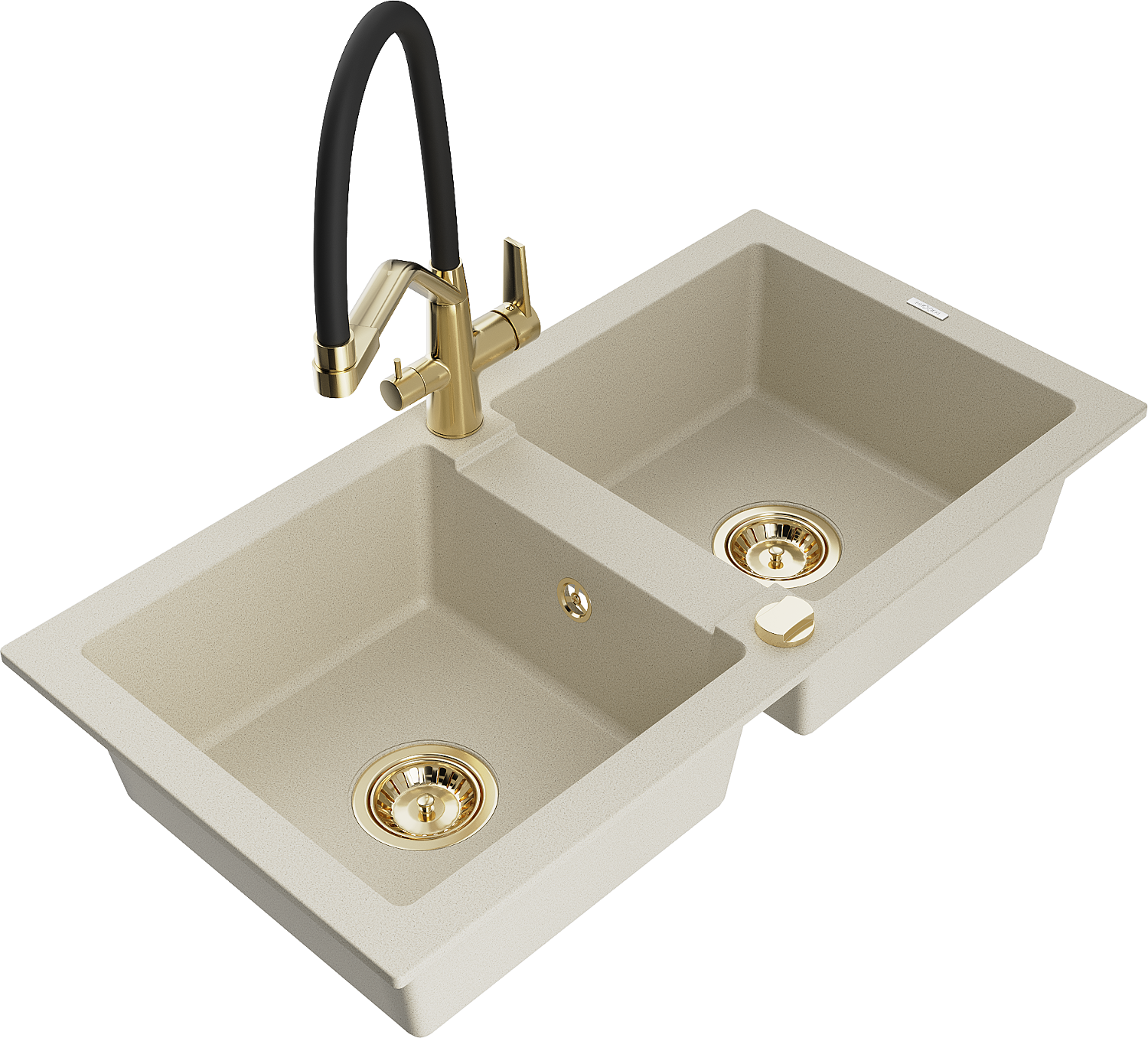 Mexen Mario granitā izlietne ar 2 nodalījumiem un virtuves maisītāju Duo, bēša - 6504-69-671701-57-G