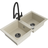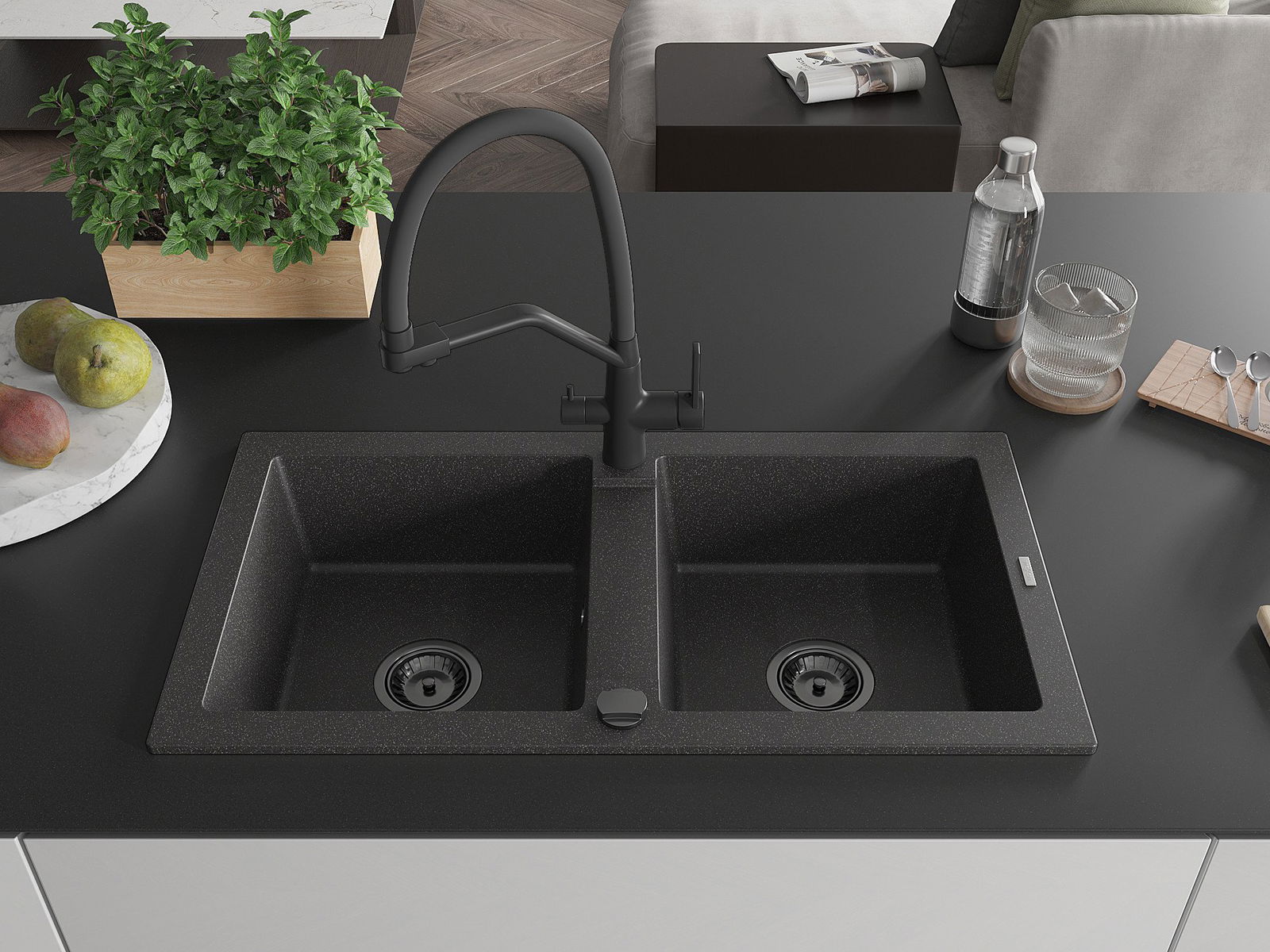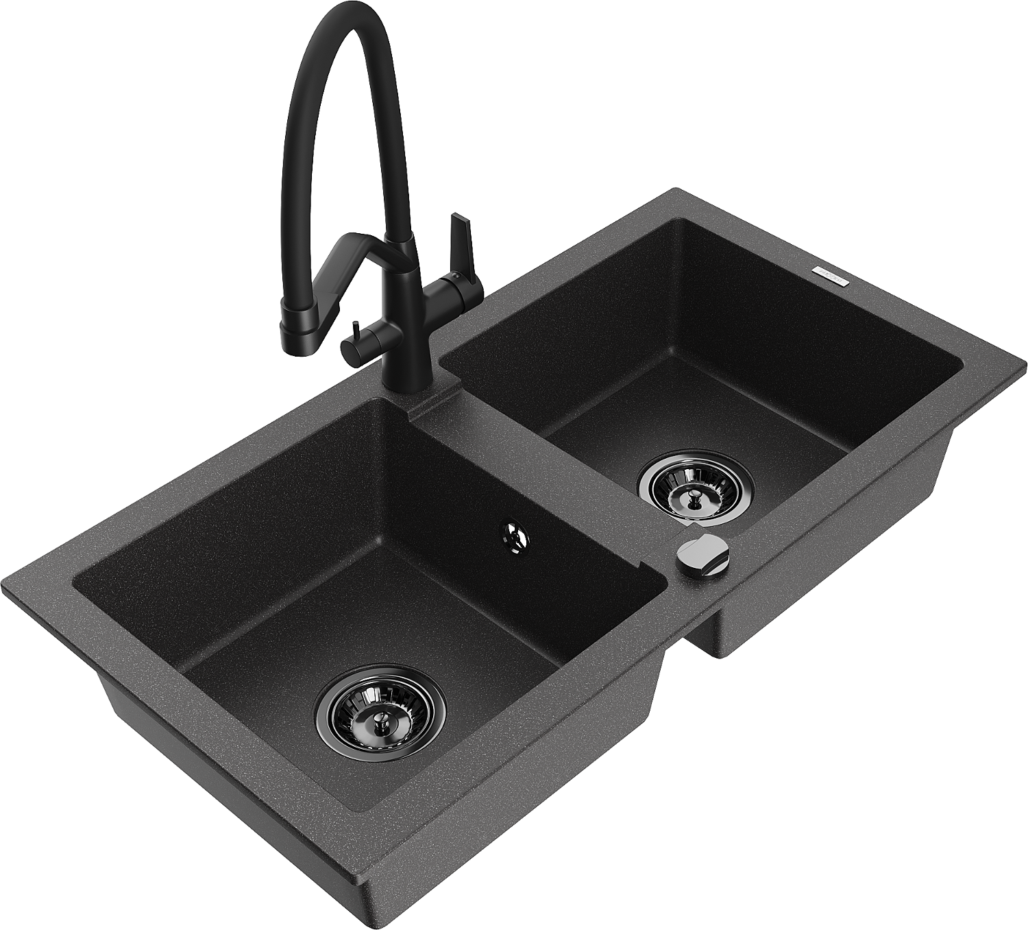 Mexen Mario granīta izlietne ar divām nodalījumiem un dušu, melna ar punktiem - 6504-76-671701-70-B