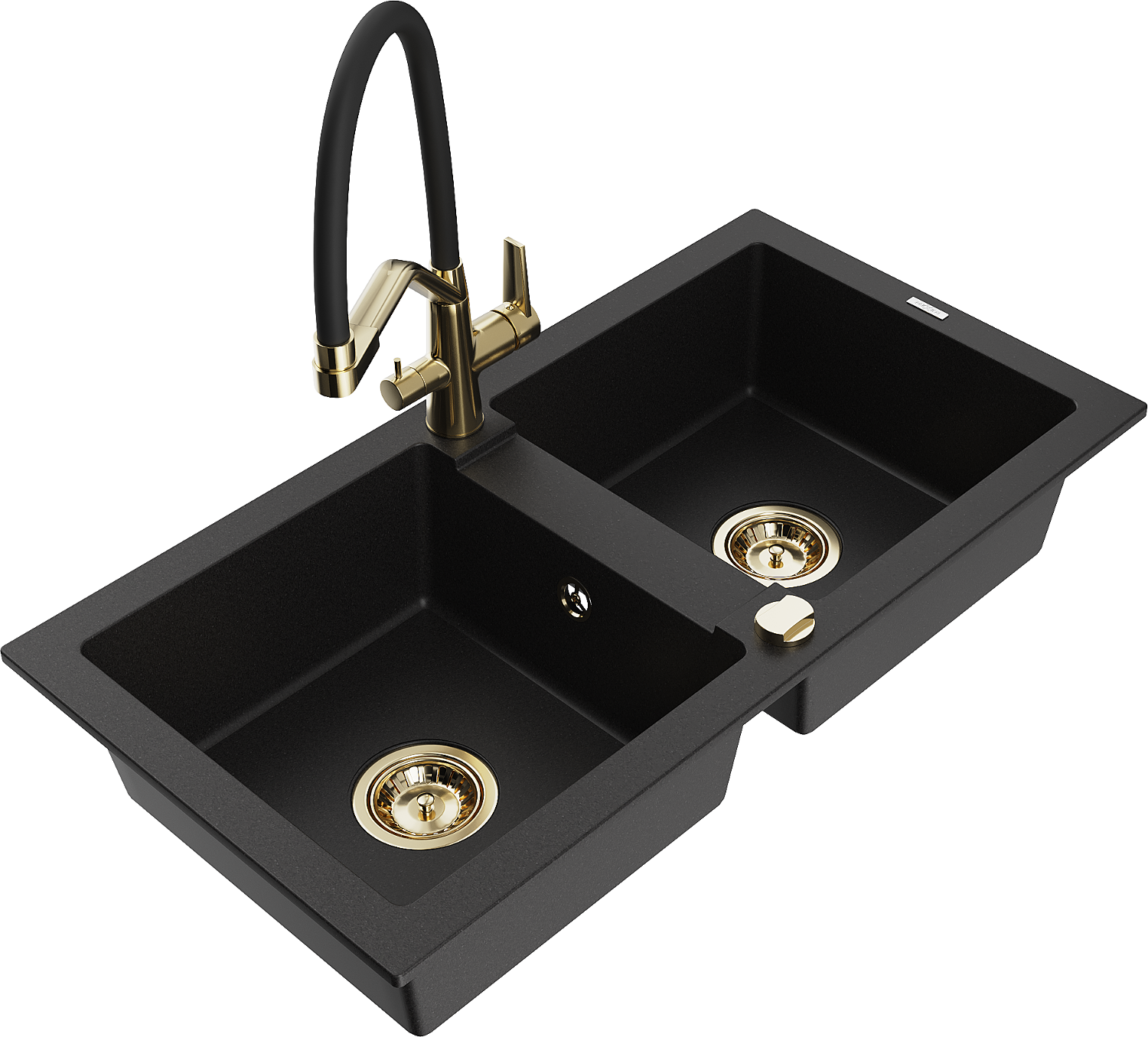 Mexen Mario divkāršs granīta virtuves izlietnes komplekts ar maisītāju Duo, melns - 6504-77-671701-57-G