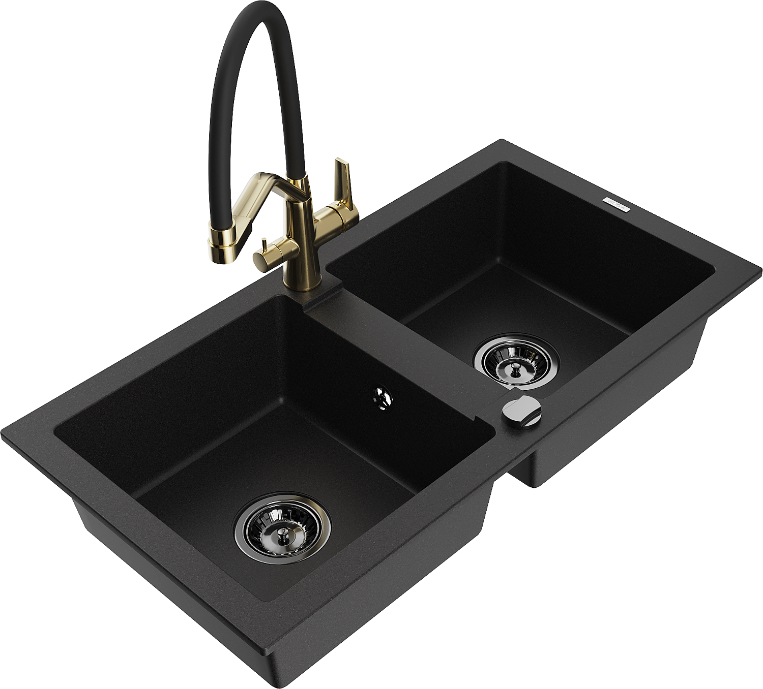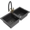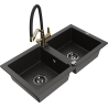 Mexen Mario granitā izlietne ar 2 nodalījumiem un virtuves jaucējkrānu Duo, melns - 6504-77-671701-57-B