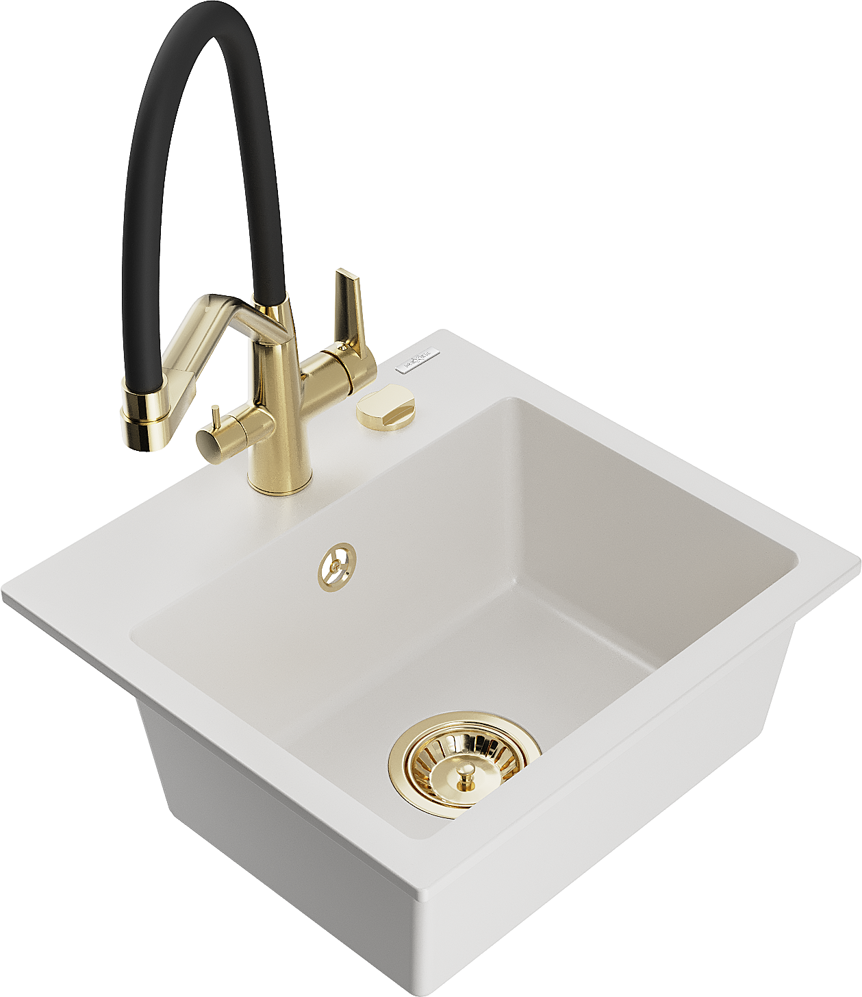 Mexen Milo granitā izlietne ar vienu nodalījumu un virtuves jaucējkrānu Duo, balts - 6505-20-671701-57-G