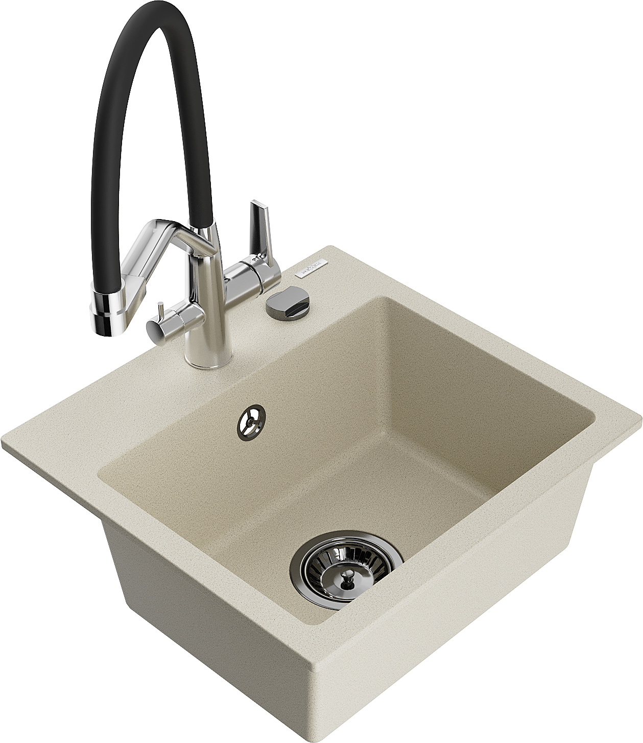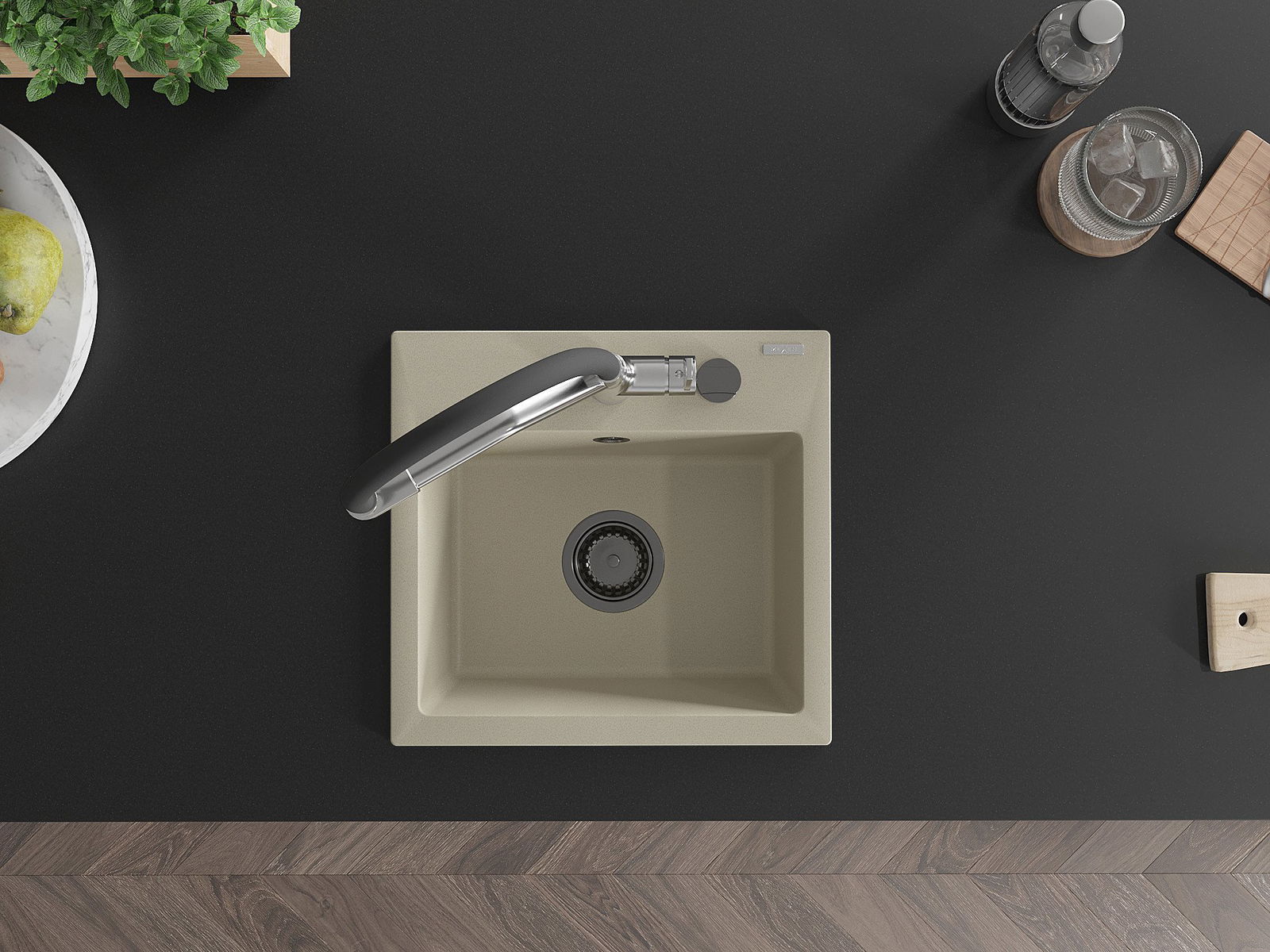 Mexen Milo granīta virtuves izlietne ar vienu nodalījumu un duo jaucējkrānu, bēša - 6505-69-671701-07-B