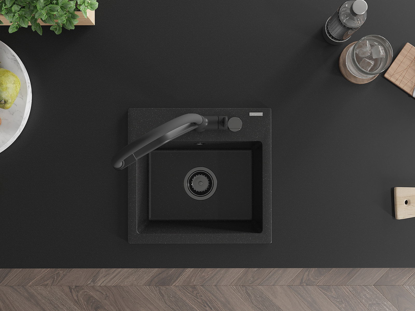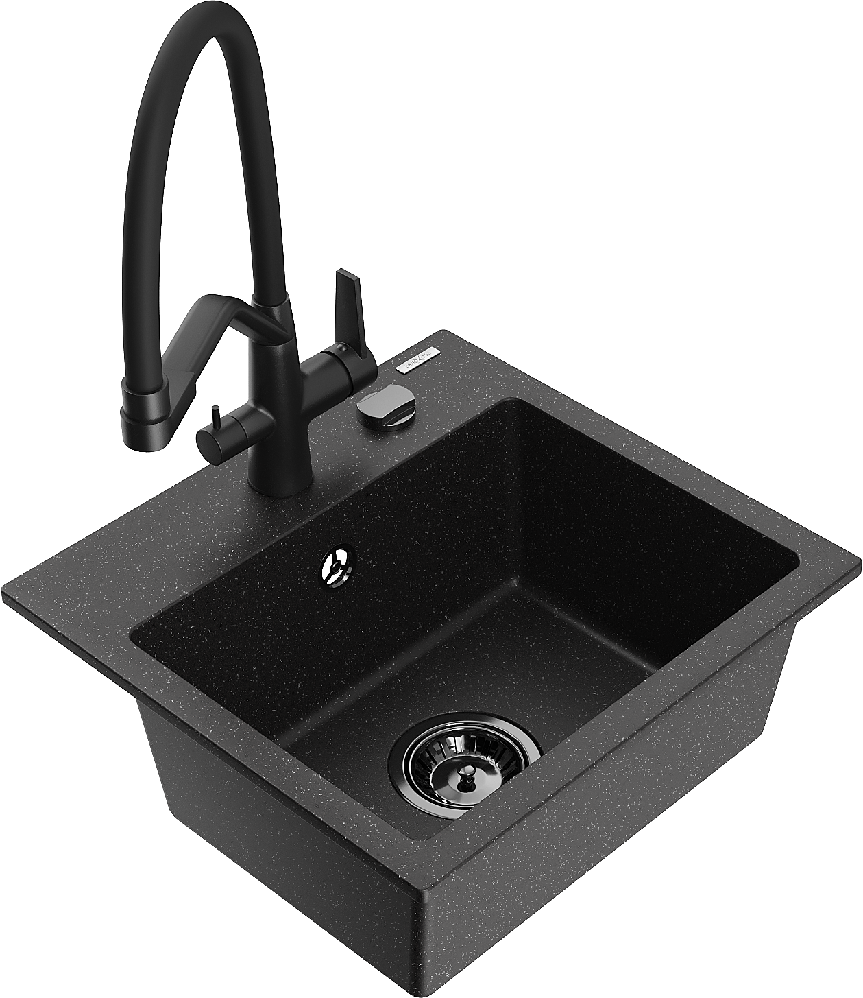 Mexen Milo granitīgs izlietne ar vienu nodalījumu un Duo virtuves jaucējkrānu, melns/sudraba metāliskā - 6505-73-671701-70-B