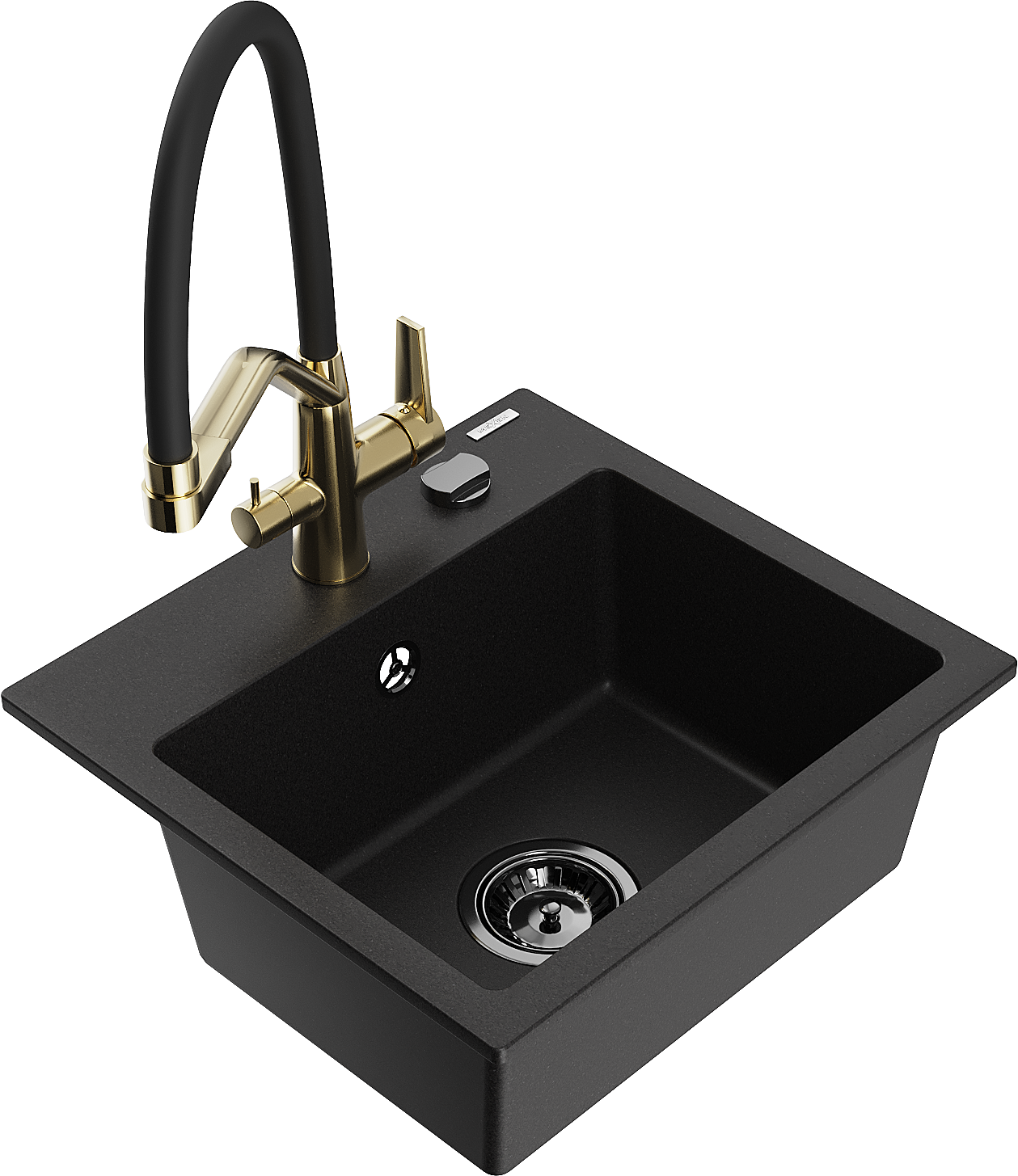 Mexen Milo granitizlietne 1 nodalījuma ar virtuves jaucējkrānu Duo, melns - 6505-77-671701-57-B