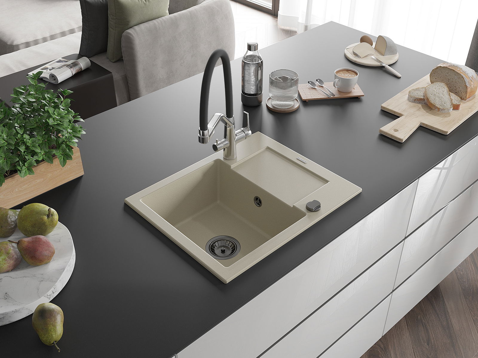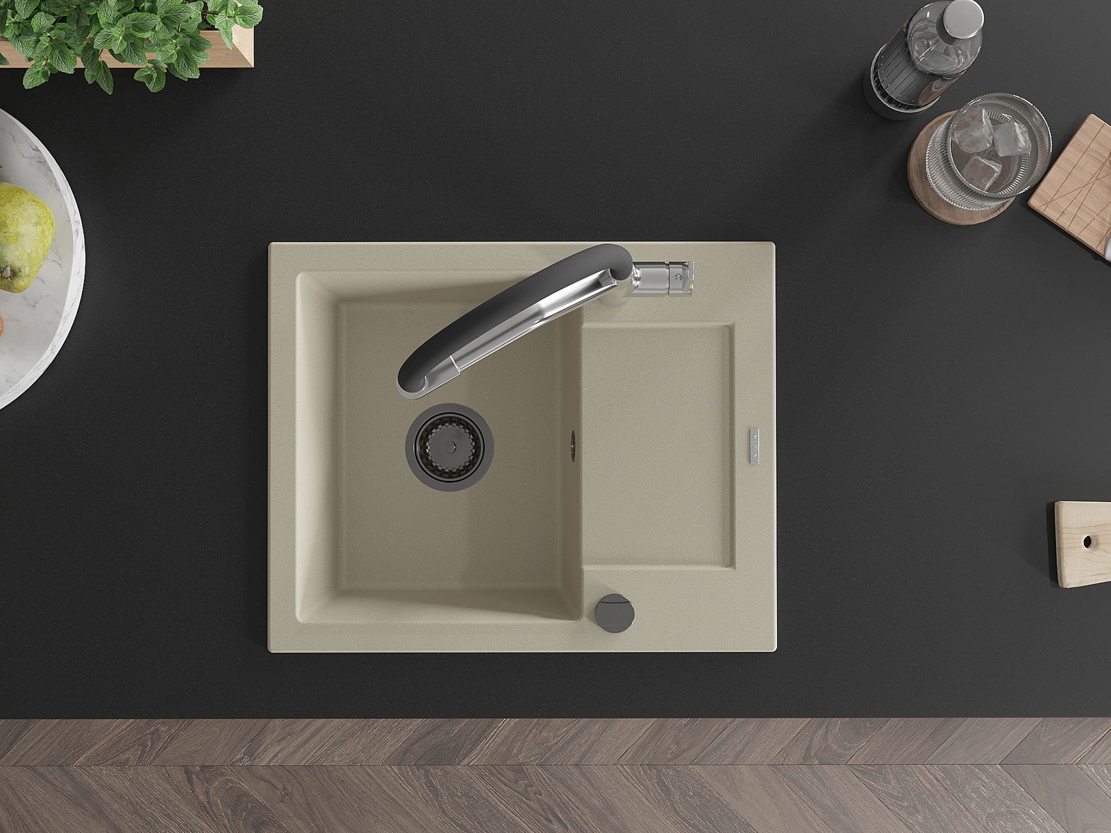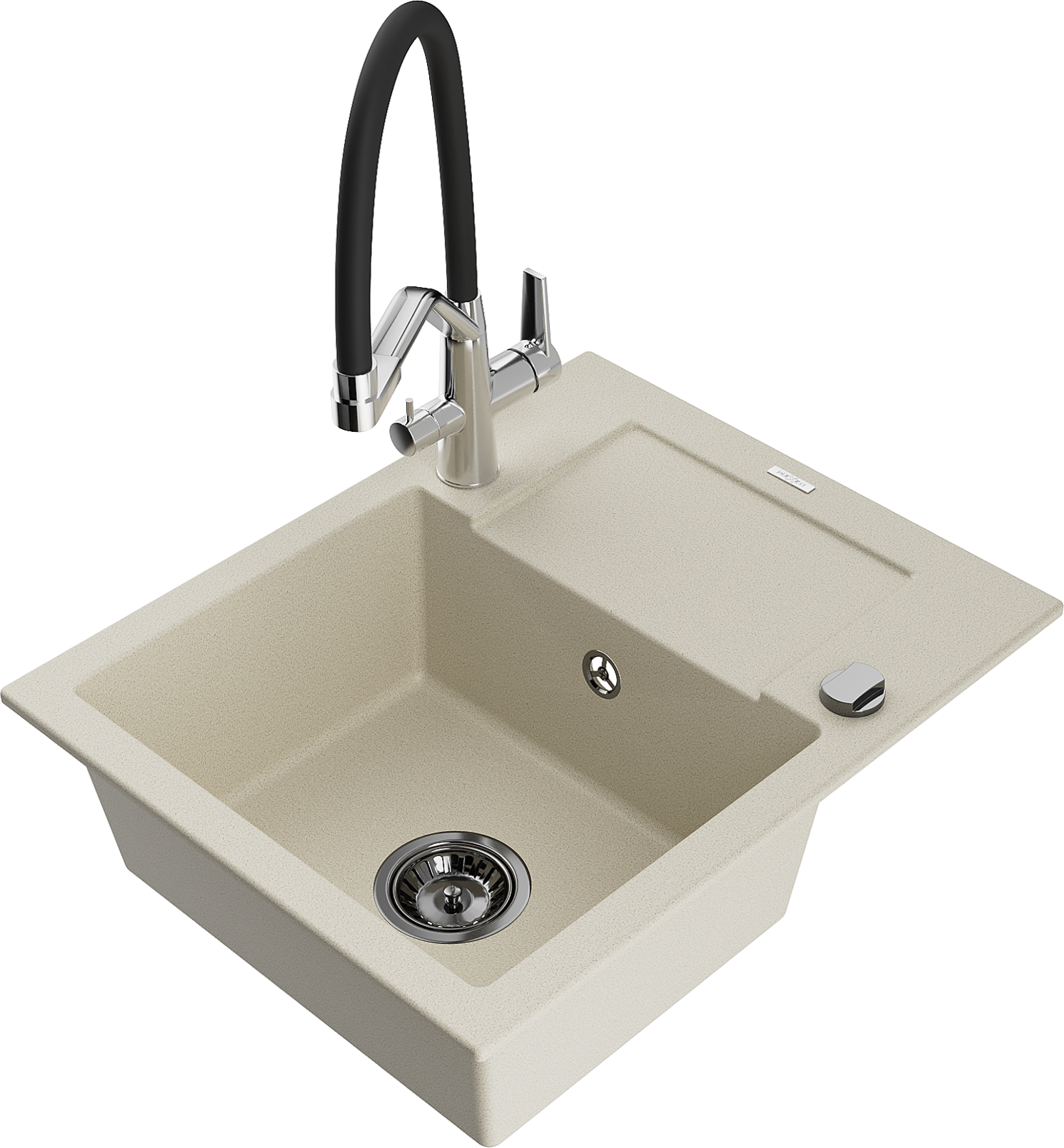 Mexen Enzo vienkameras granīta izlietne ar notecēju un virtuves jaucējkrānu Duo, bēša - 6506-69-671701-07-B