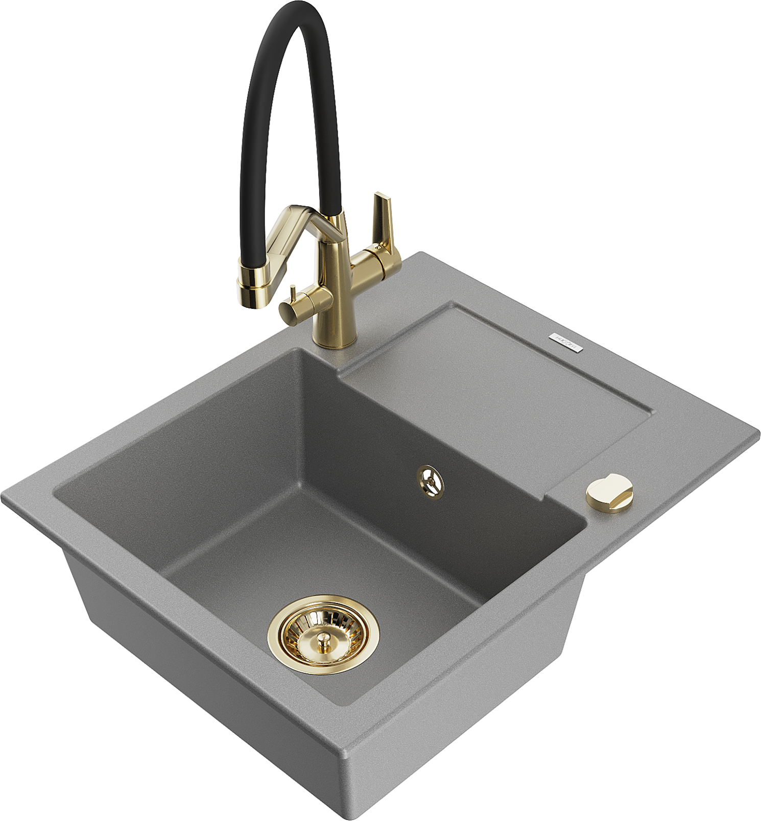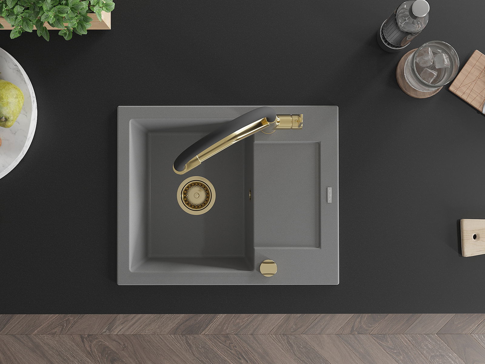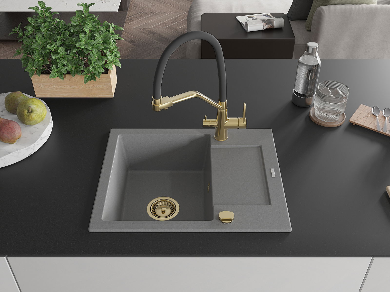 Mexen Enzo granitizlietne 1-kameras ar noteces vietu un virtuves jaucējkrānu Duo, pelēks - 6506-71-671701-57-G